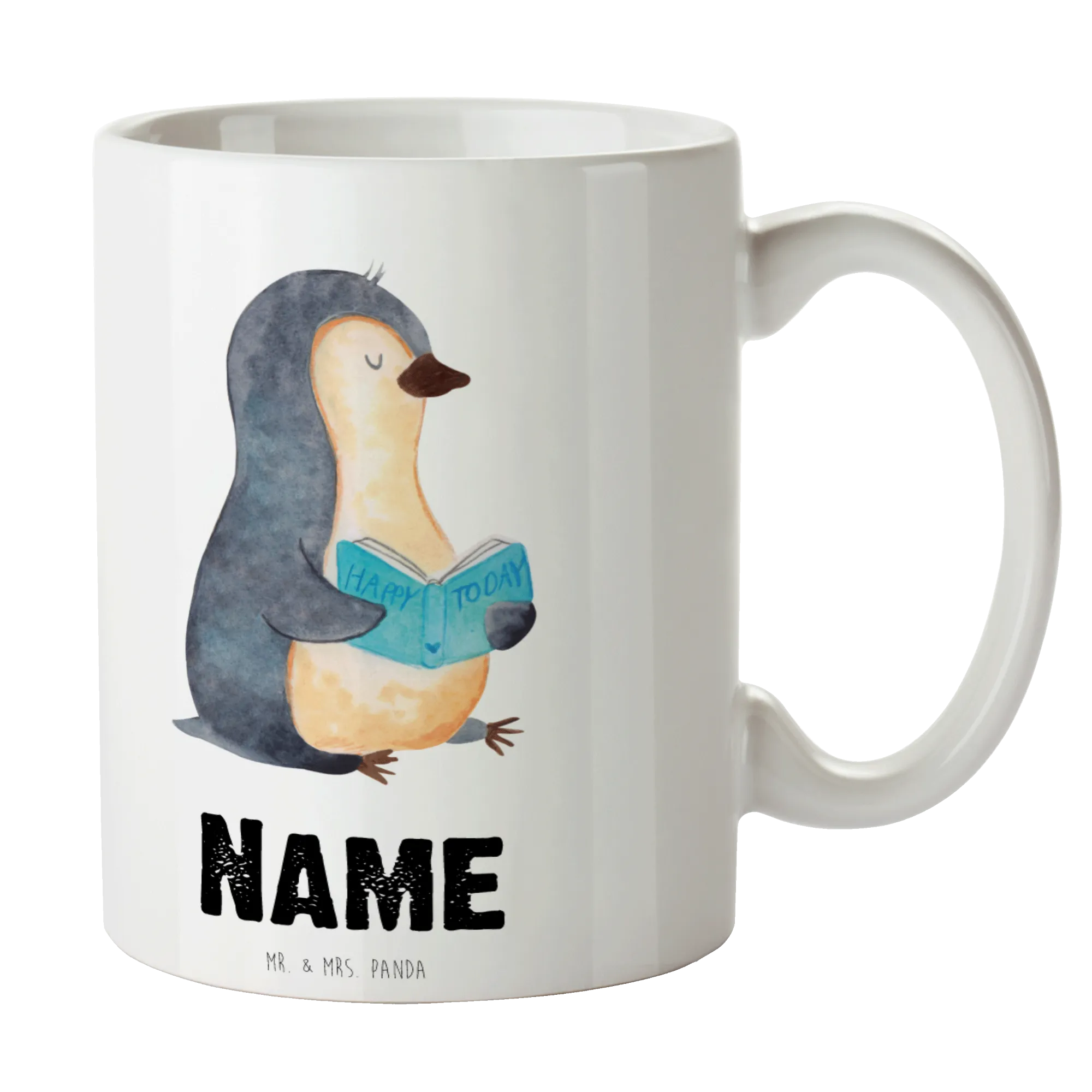 Personalisierte Tasse Pinguin Buch Tasse, Personalisiert, Personalisierte Tasse, Drucken, Tasse mit Namen, Namen, Namenstasse, Wunschname, Pinguin, Buch, Nichtstun, Faulenzen, Bücherwurm, Urlaub, Freizeit, Ferien, Pinguine, Lesen
