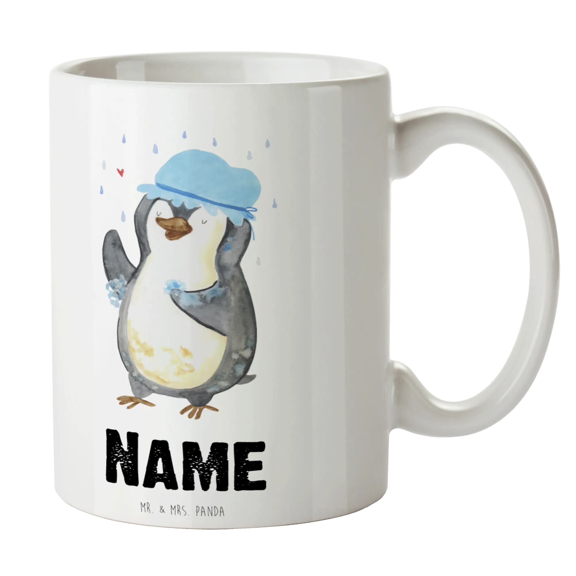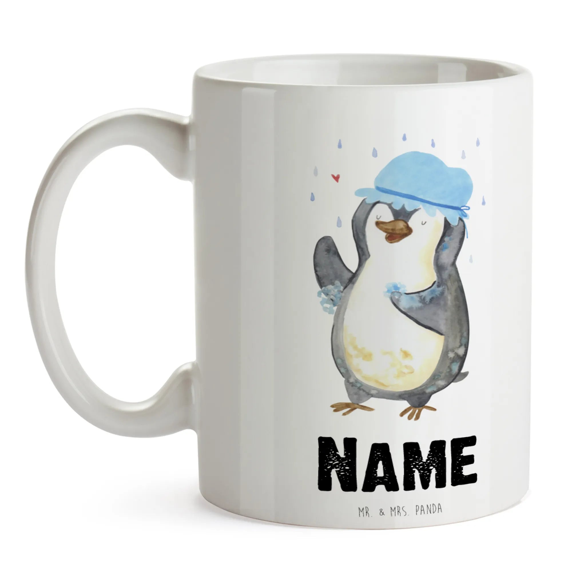 Suchst du nach dem perfekten Geschenk für Pinguin-Liebhaber oder einfach nur für dich selbst? Unsere personalisierte Tasse mit dem zauberhaften Motiv "Pinguin duscht" aus der Pinguin-Kollektion ist genau das Richtige! Diese wunderschöne, spülmaschinenfeste Keramiktasse wird nicht nur mit deinem Wunschnamen bedruckt, sondern bringt auch ordentlich gute Laune in jeden Morgen.