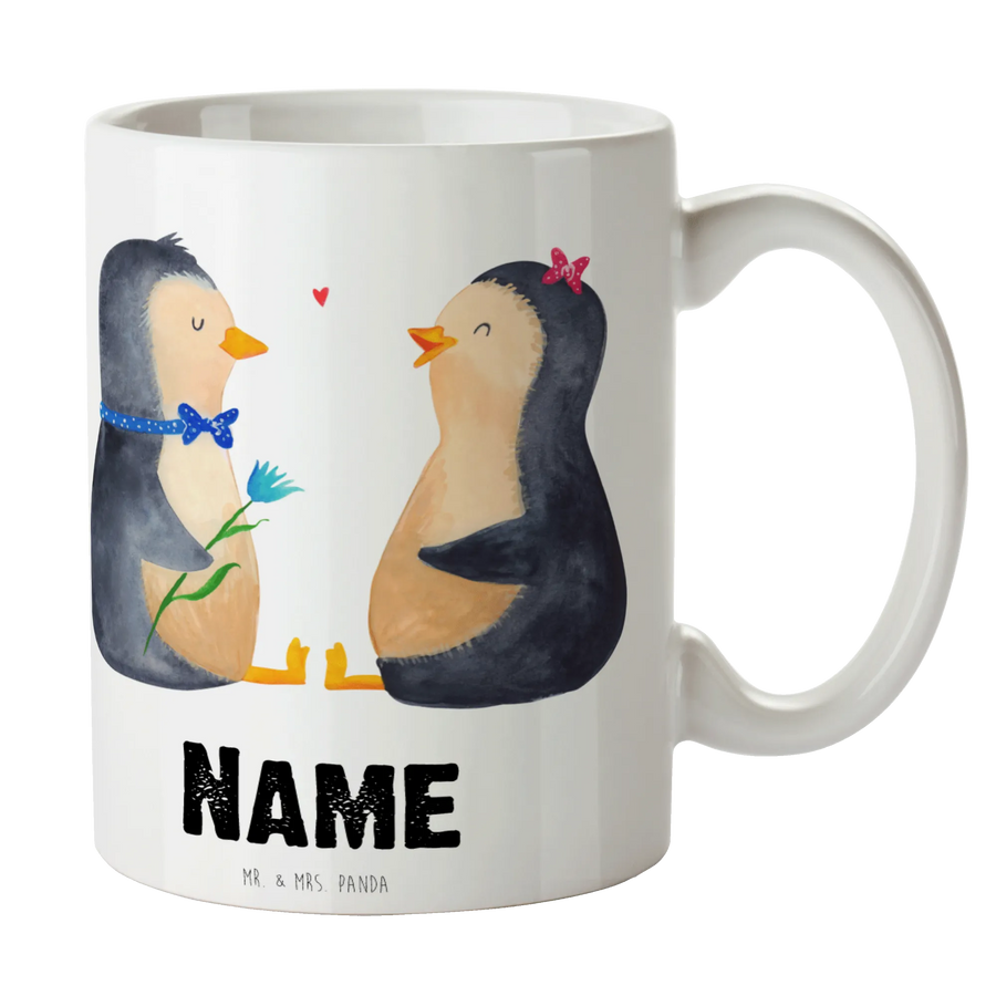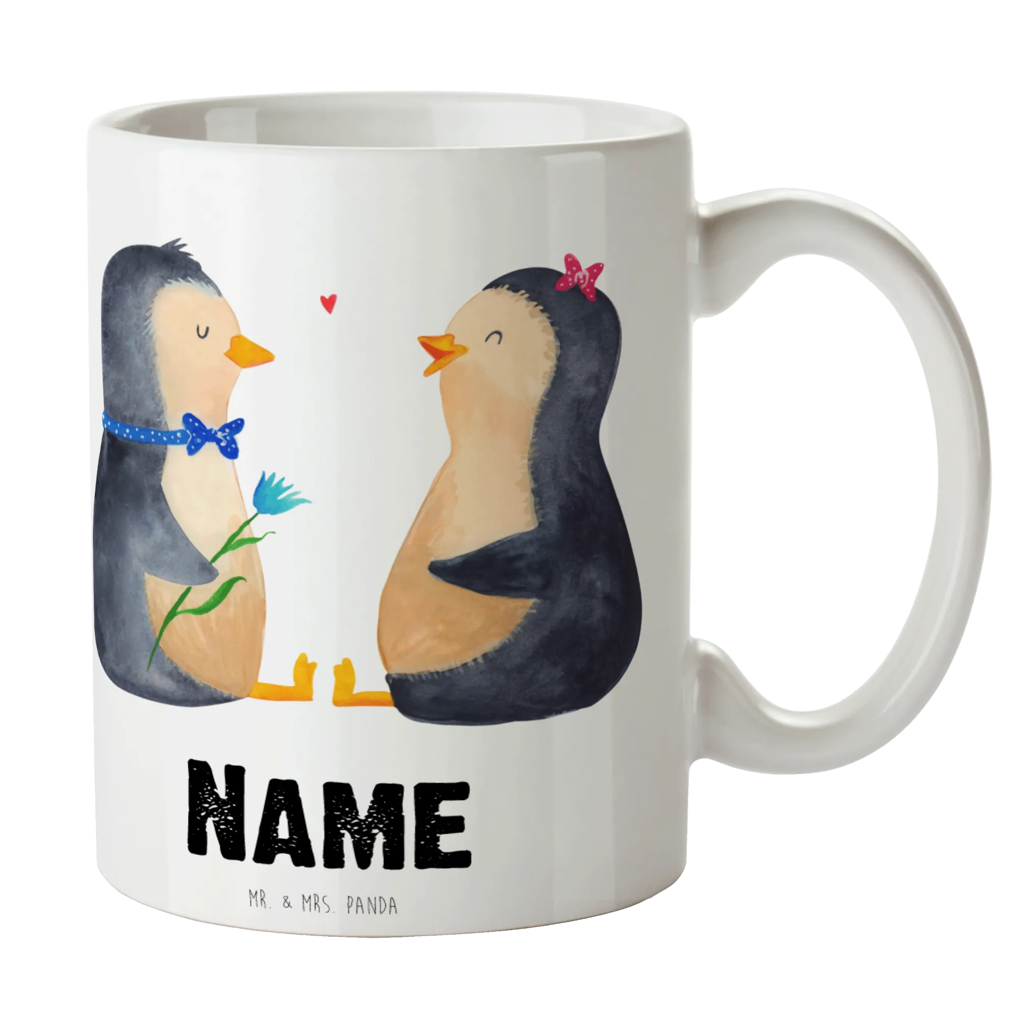 Entdecke die perfekte Geschenkidee mit der personalisierten Tasse Pinguin Pärchen von Mr. & Mrs. Panda!