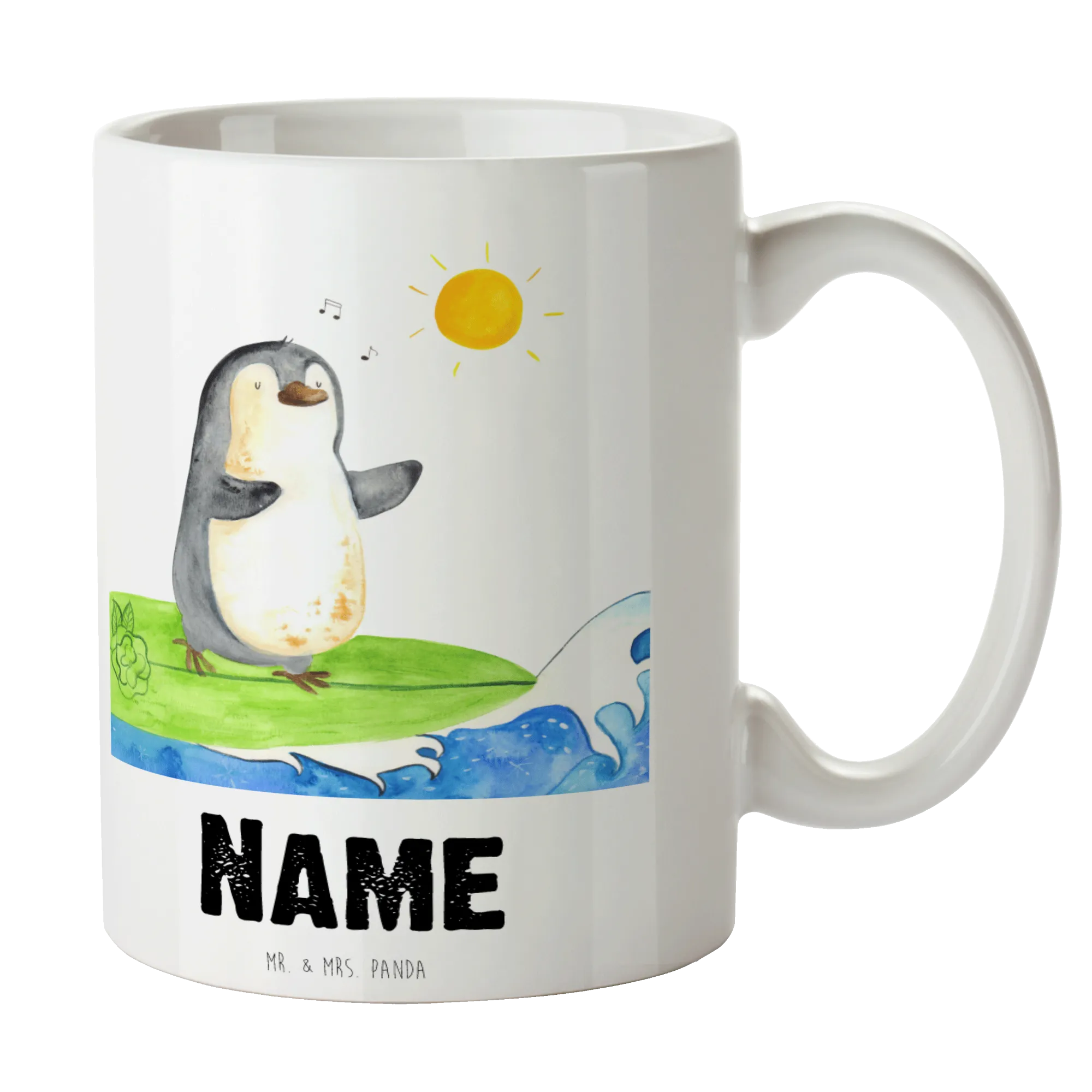 Die personalisierte Tasse Pinguin Surfer von Mr. & Mrs. Panda ist das perfekte Geschenk für alle, die das Meer, Surfen und die süßen, kleinen Pinguine lieben! Mit ihrem fröhlichen Motiv eines surfenden Pinguins, der mit viel Leidenschaft und Mut die Wellen reitet, bringt diese Tasse frohe Stimmung in jeden Tag.
