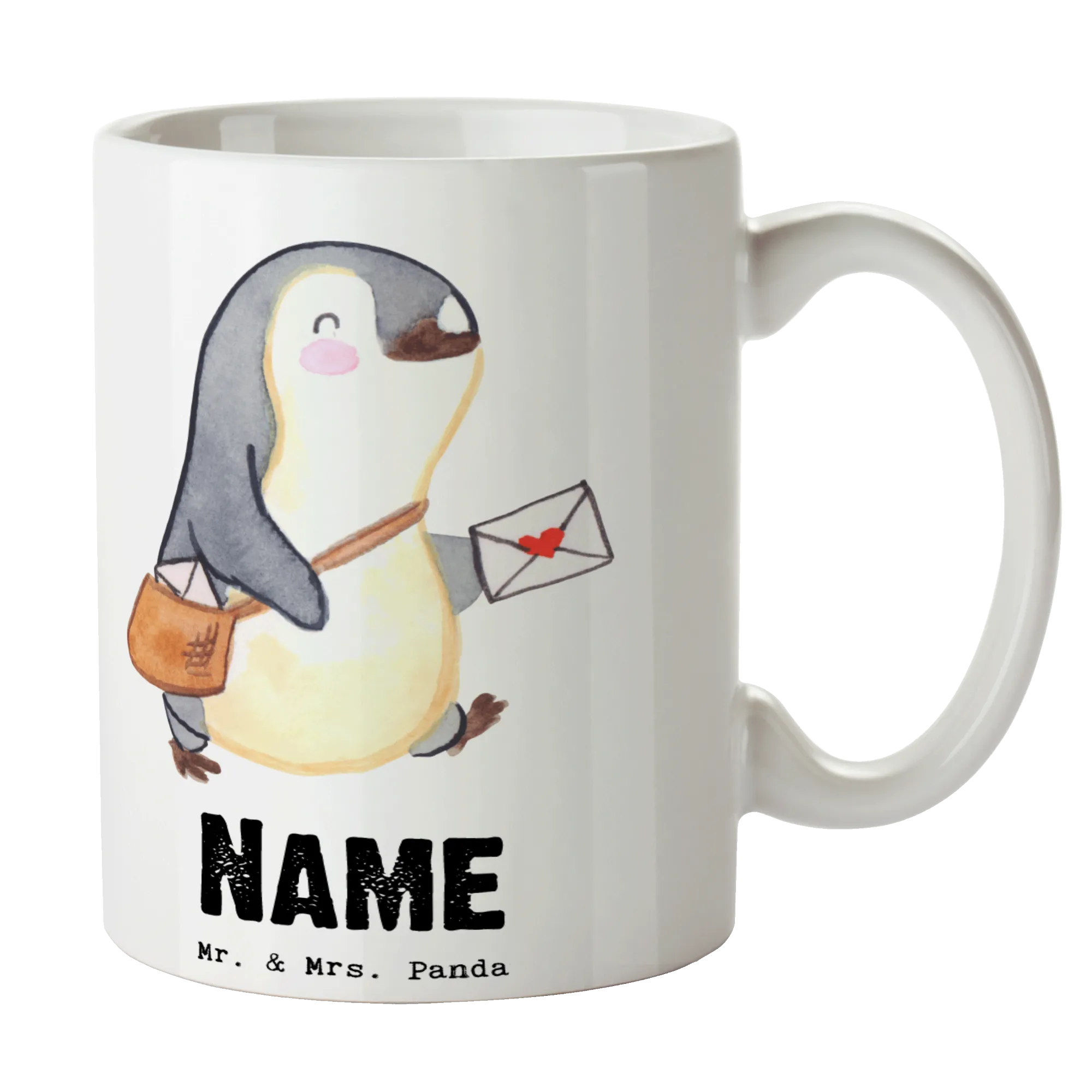 Du suchst das perfekte Geschenk für einen Postboten oder eine Postbotin? Dann ist die personalisierte Tasse "Postbote mit Herz" von Mr. & Mrs. Panda genau das Richtige für Dich!