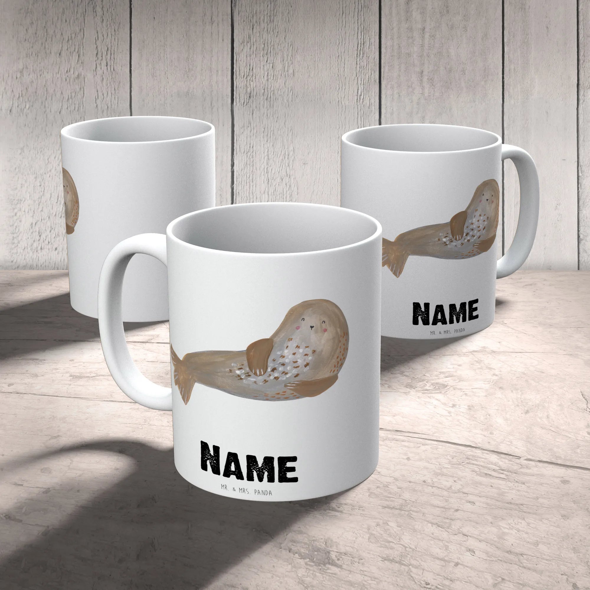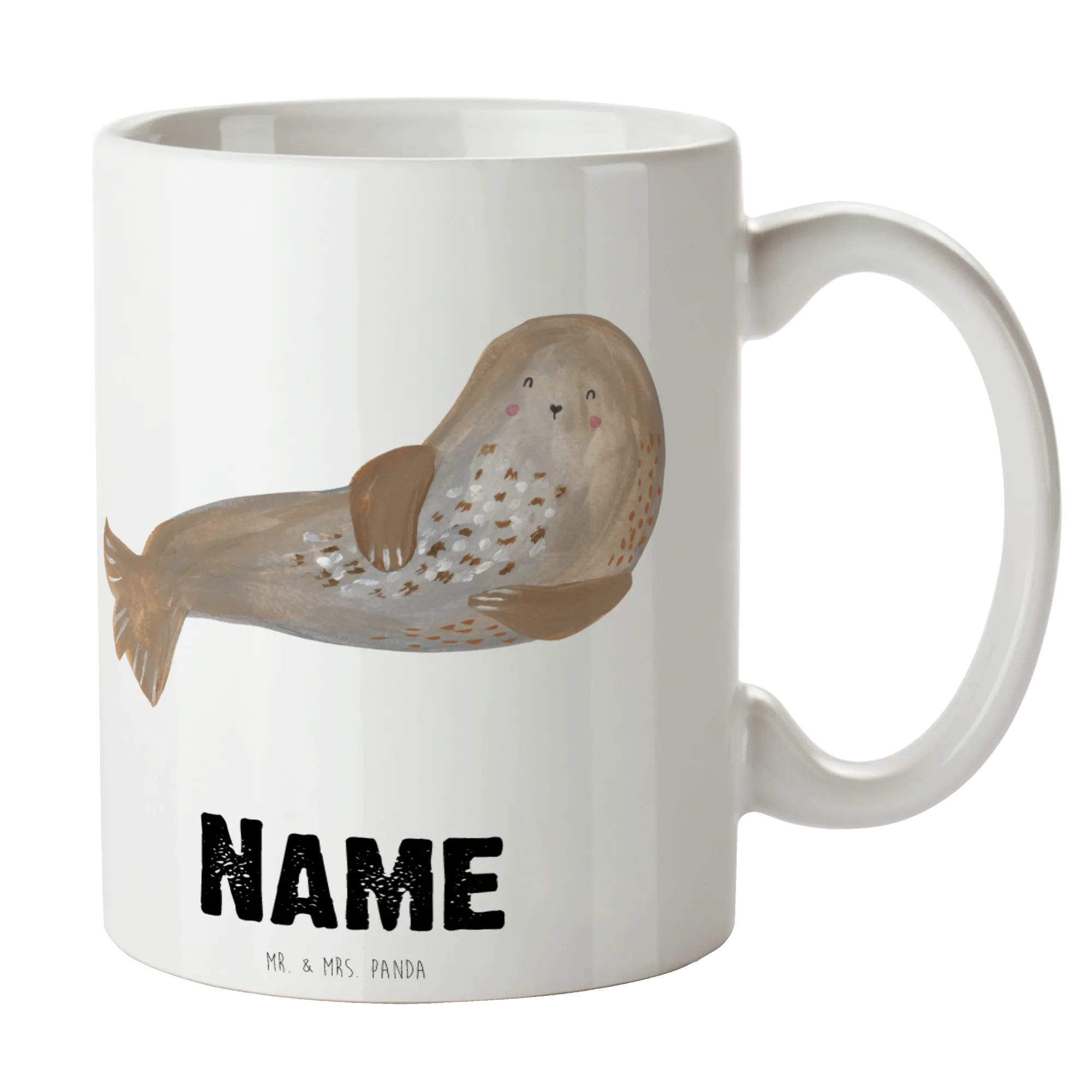 Mr. & Mrs. Panda – Personalisierte Tasse „Robbe lachend“ aus der Small World Kollektion