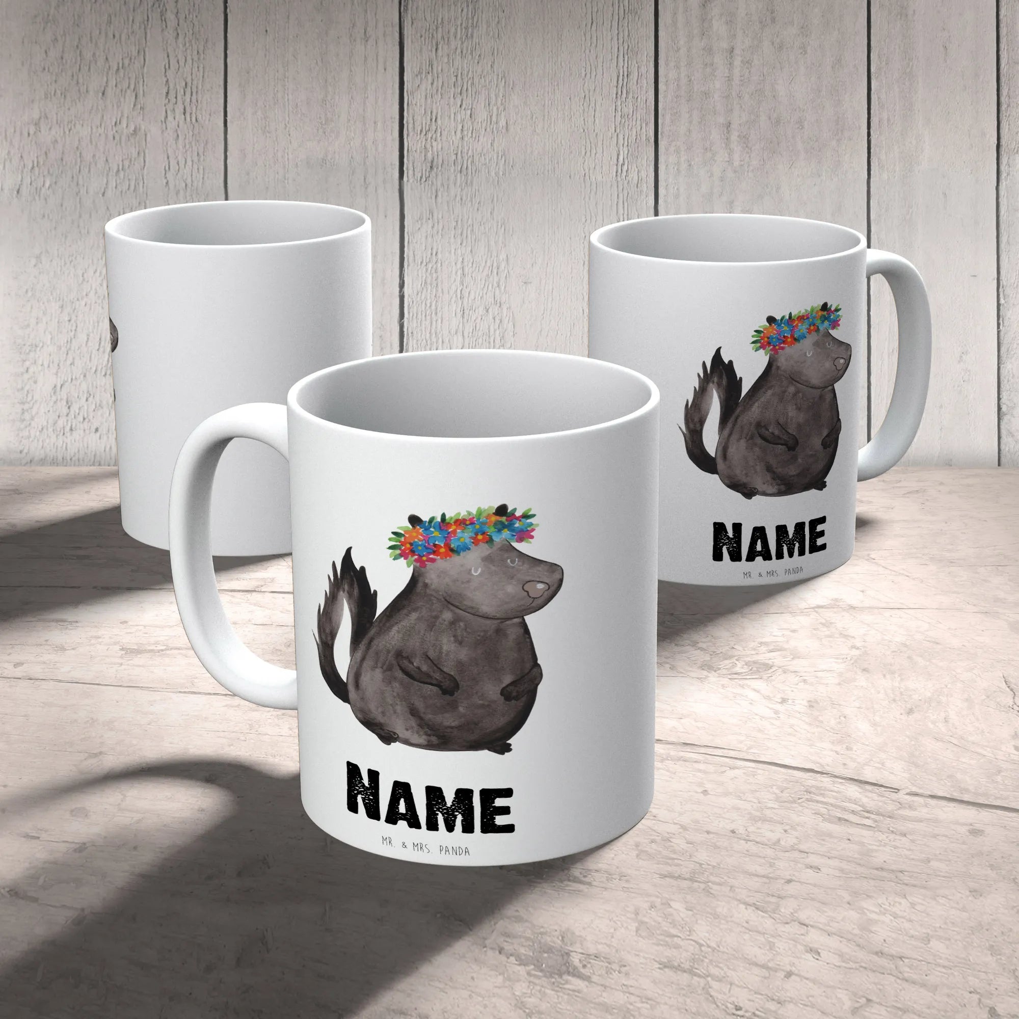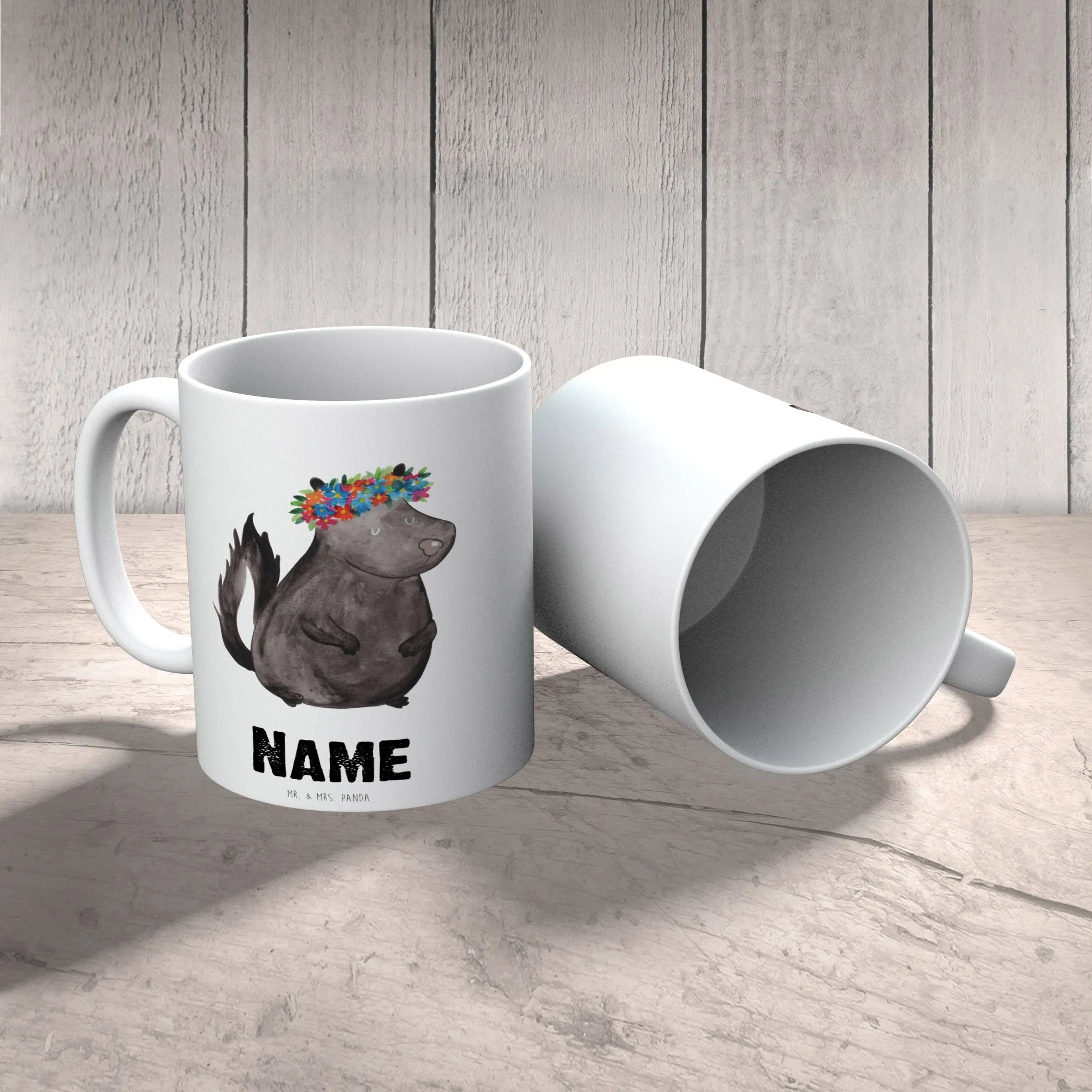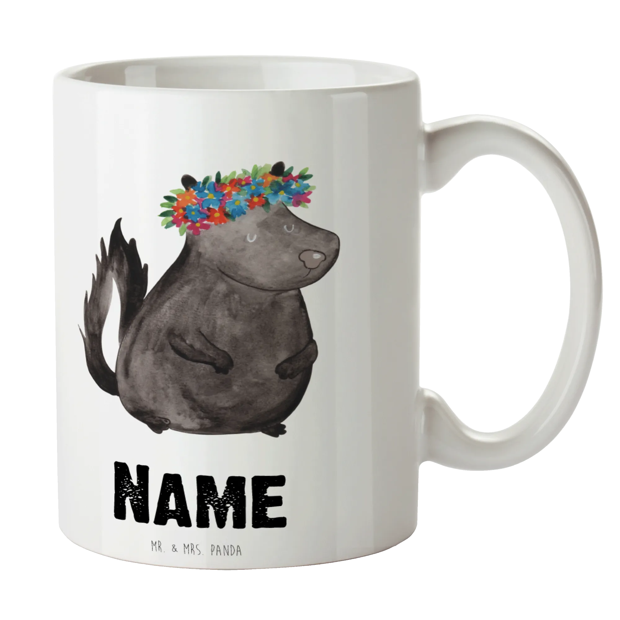 Personalisierte Tasse Stinktier Blumenmaedchen