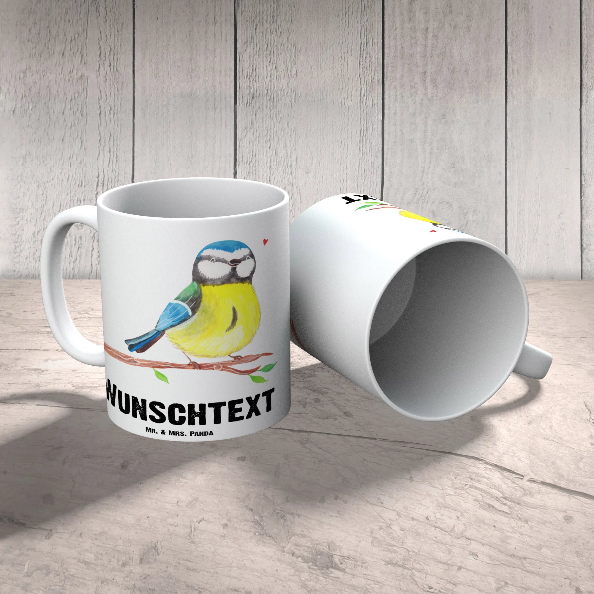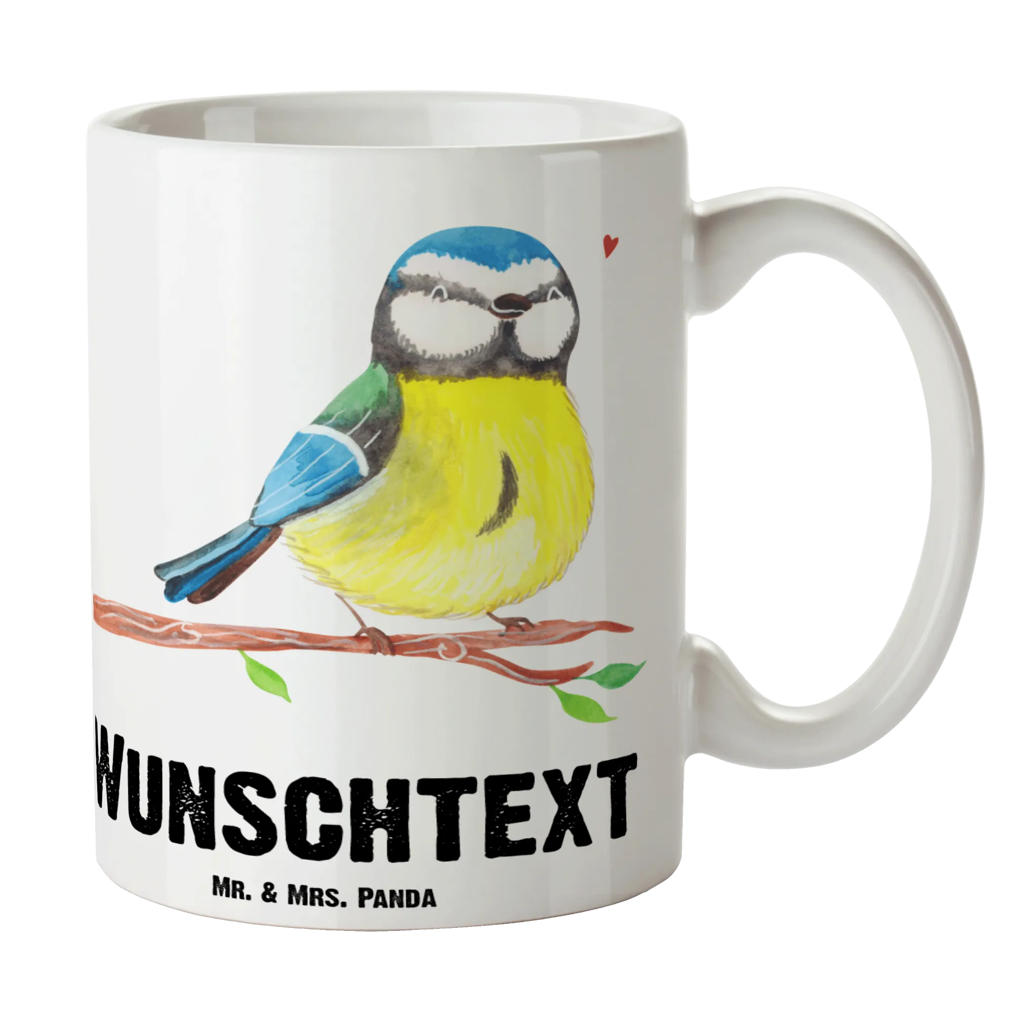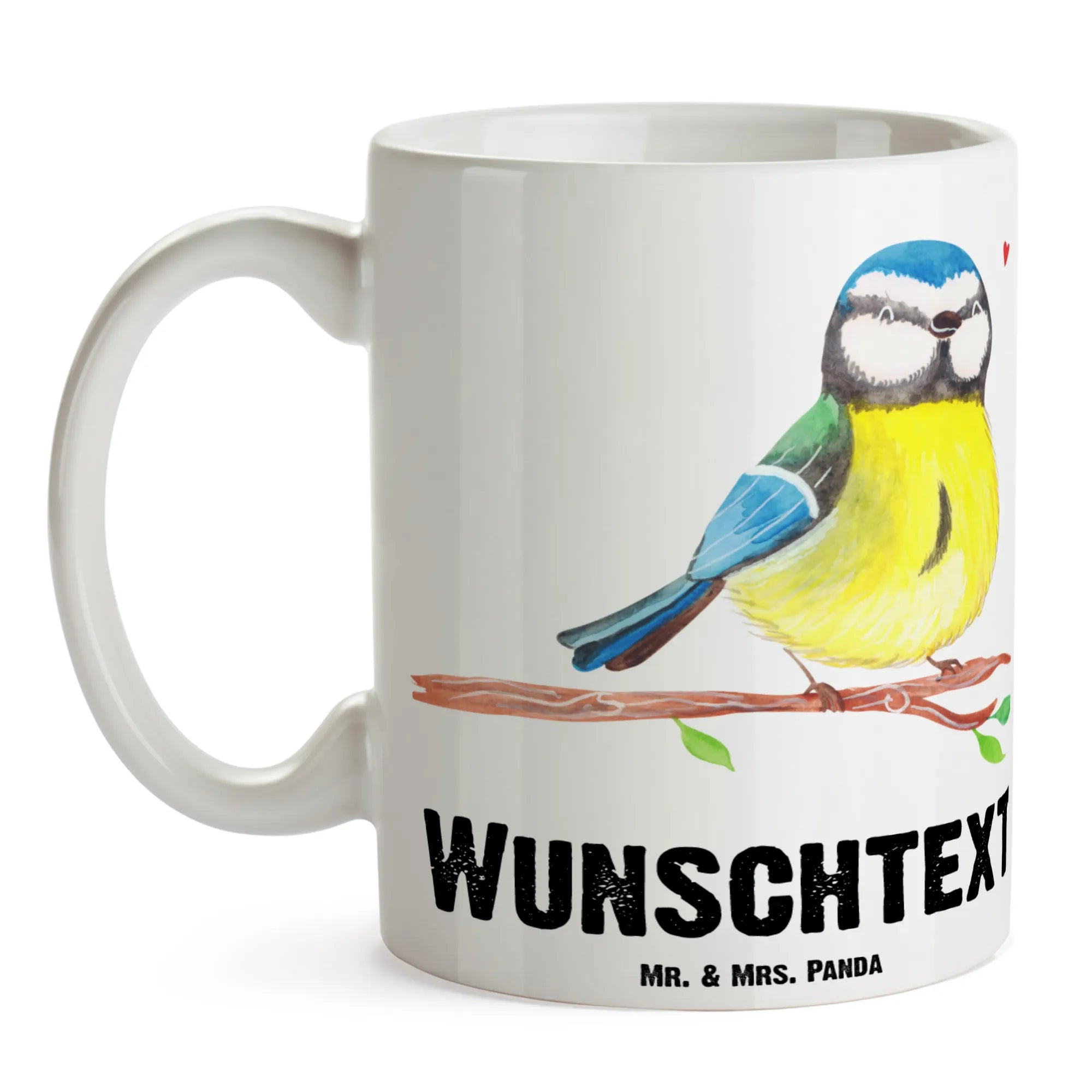 Ob als Geschenk für einen lieben Freund, ein Familienmitglied oder einfach für dich selbst – diese Tasse wird mit deinem Wunschnamen personalisiert und macht jede Tasse Tee oder Kaffee zu etwas ganz Besonderem. Die fröhliche Blaumeise, die liebevoll von Mr. & Mrs. Panda gezeichnet wurde, strahlt Lebensfreude aus und erinnert an die ersten Frühlingsgefühle und die festliche Osterzeit.
