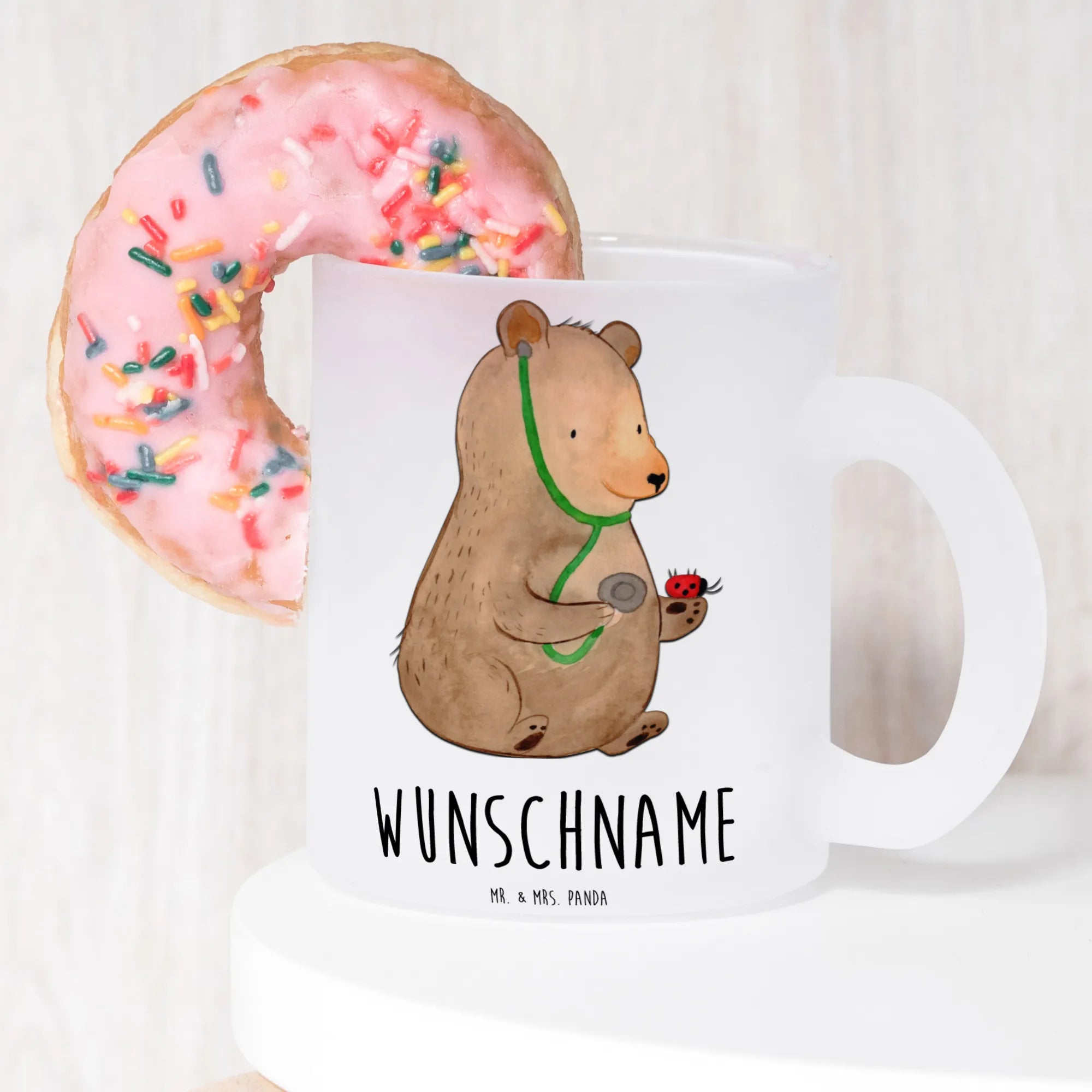 Mit einem bezaubernden Bären, der einen kleinen Marienkäfer behandelt, bringt die Tasse nicht nur Freude, sondern auch eine Prise Humor in den Arbeitsalltag. Wenn du auf der Suche nach einem besonderen Geschenk für einen Mediziner bist, hast du hier das ideale Produkt gefunden. Jeder wird die personalisierte Teetasse mit Namen lieben!