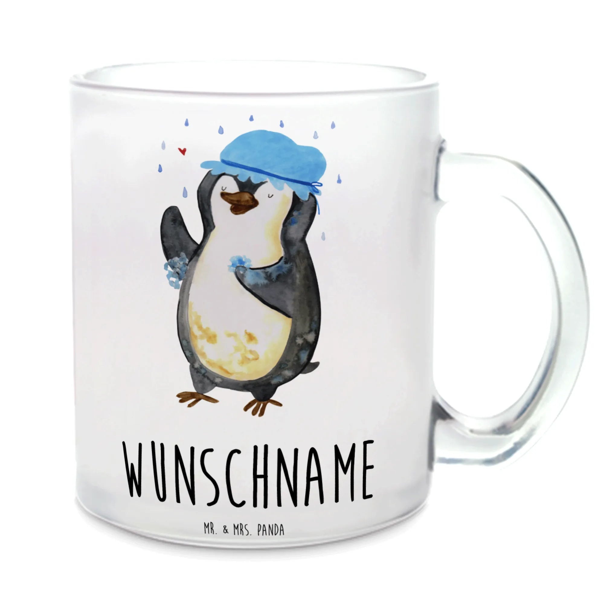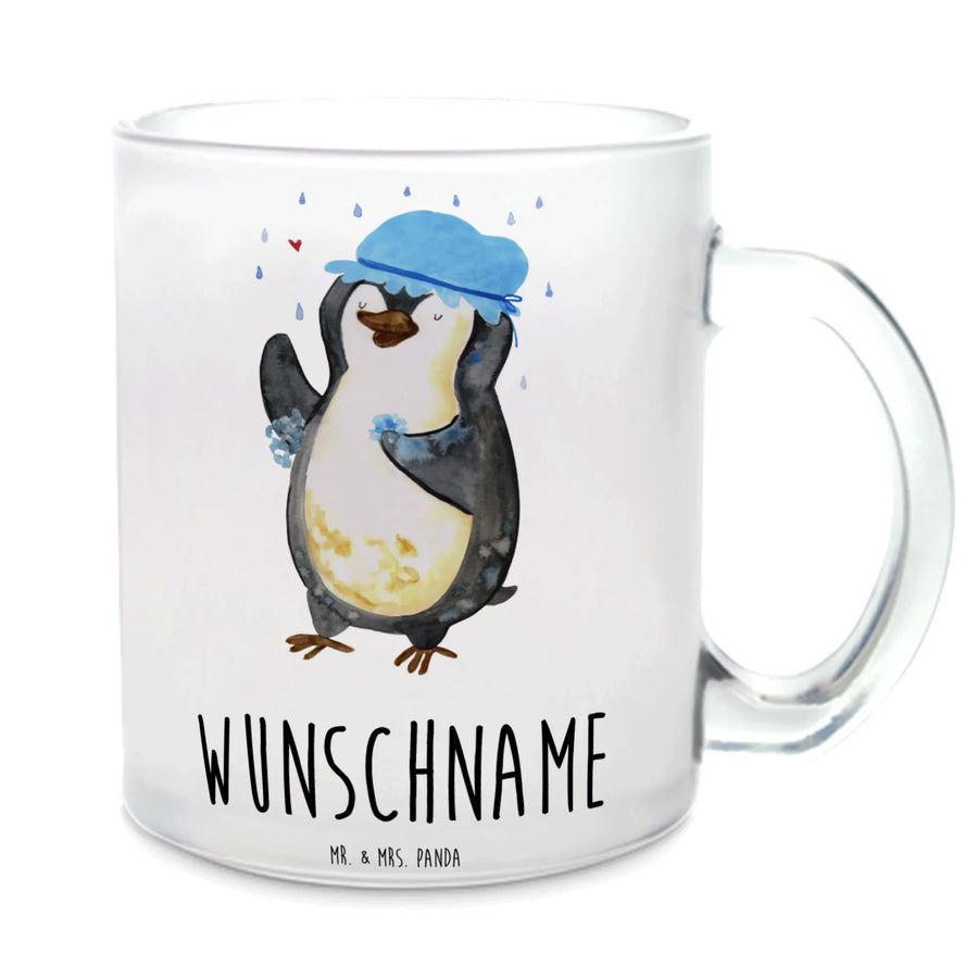 Personalisierte Teetasse Pinguin duscht