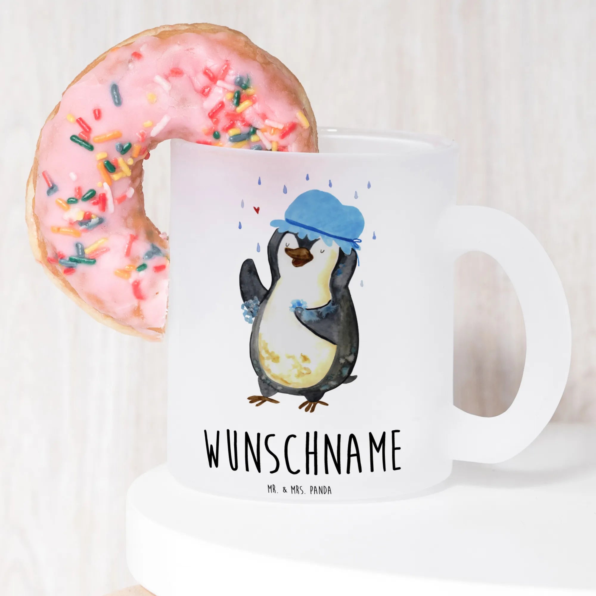 Du suchst nach dem perfekten Geschenk für einen Pinguin-Liebhaber? Unsere personalisierte Teetasse mit dem zauberhaften Motiv "Pinguin duscht" aus der Pinguin-Kollektion ist genau das Richtige!