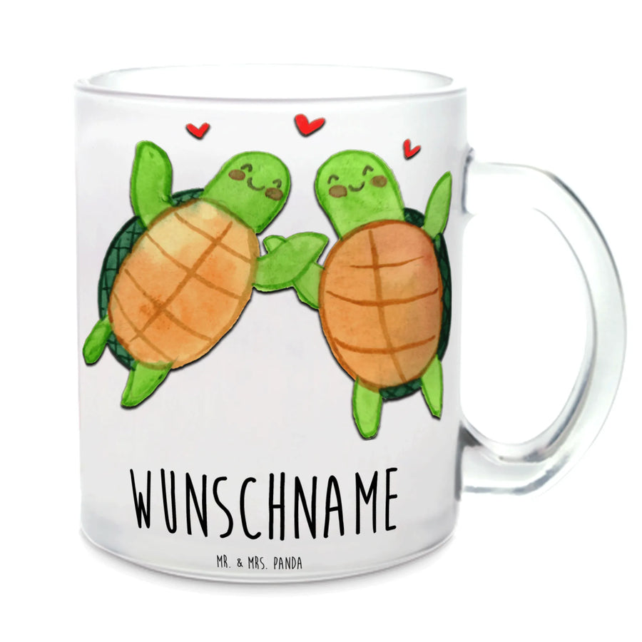 Entdecke die perfekte Kombination aus Liebe und Funktionalität mit unserer personalisierten Teetasse im Schildkröten-Paar Design von Mr. & Mrs. Panda!