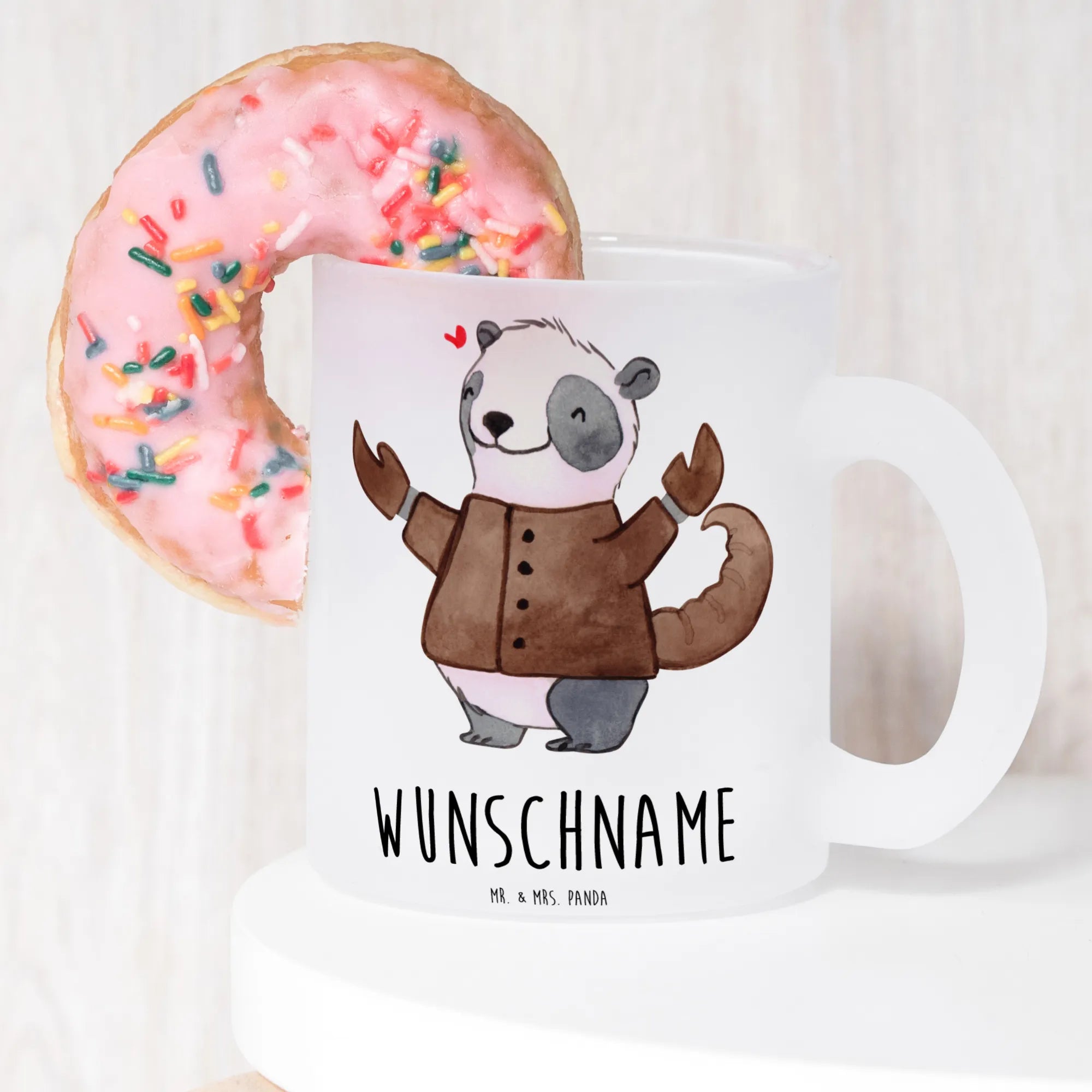 Die personalisierte Teetasse "Skorpion Astrologie" von Mr. & Mrs. Panda ist das perfekte Geschenk für alle Skorpion-Geborenen! Mit einem liebevoll handgezeichneten Motiv eines niedlichen Pandas, der stolz in seinem Skorpion-Kostüm strahlt, bringt diese Tasse nicht nur Freude, sondern auch eine Portion astromantischen Charme in den Alltag.
