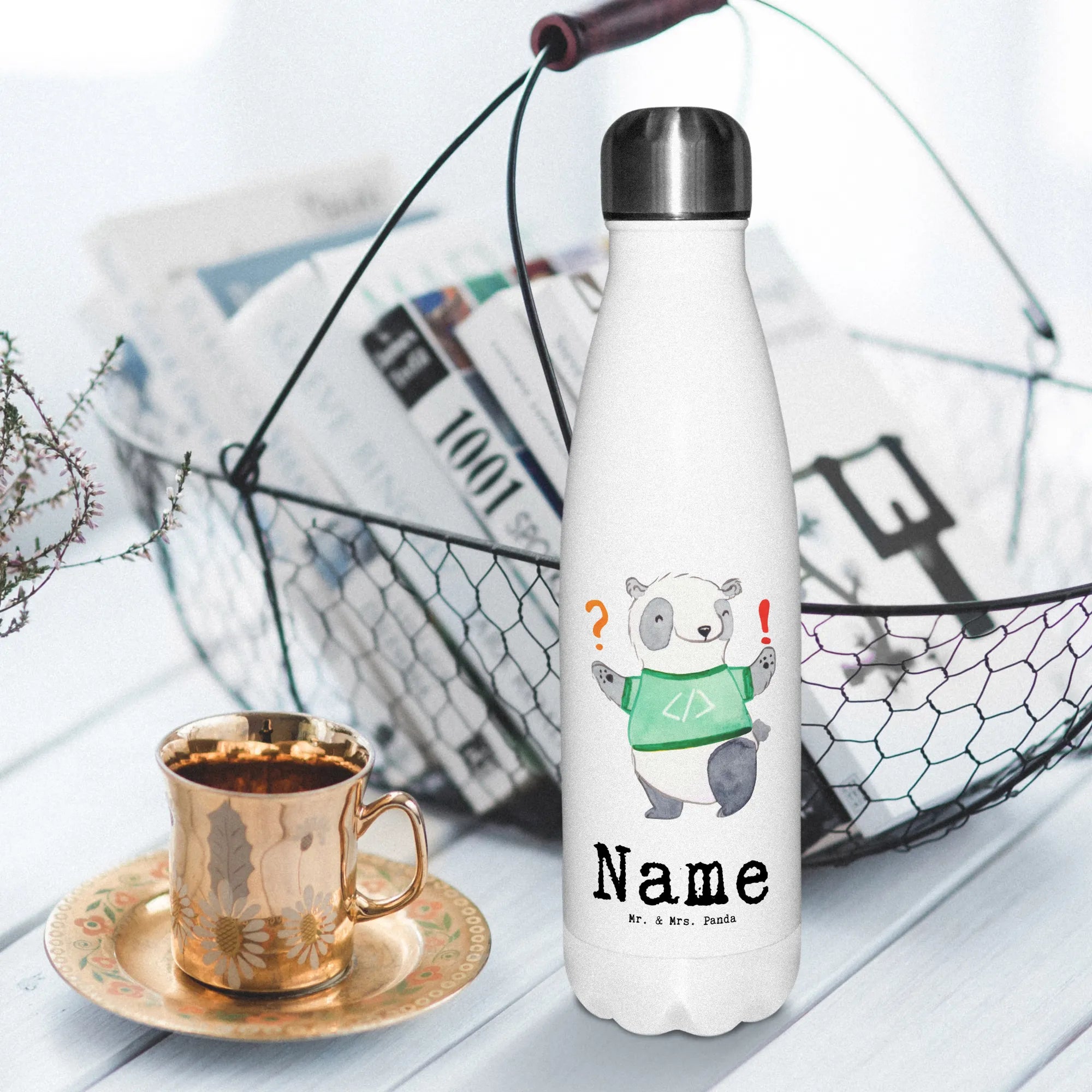 Ob als Geschenk zum Berufsabschluss, zur Feier eines Jubiläums oder einfach als kleine Aufmerksamkeit für einen Kollegen oder eine Kollegin – diese Thermosflasche ist genau das richtige Präsent. Überrasche deinen Lieblingsprogrammierer mit einem einzigartigen, liebevoll gestalteten Geschenk, das sowohl praktisch als auch persönlich ist. Mach das Programmieren zu einem noch aufregenderen Abenteuer mit unserer personalisierten Trinkflasche von Mr. & Mrs. Panda!