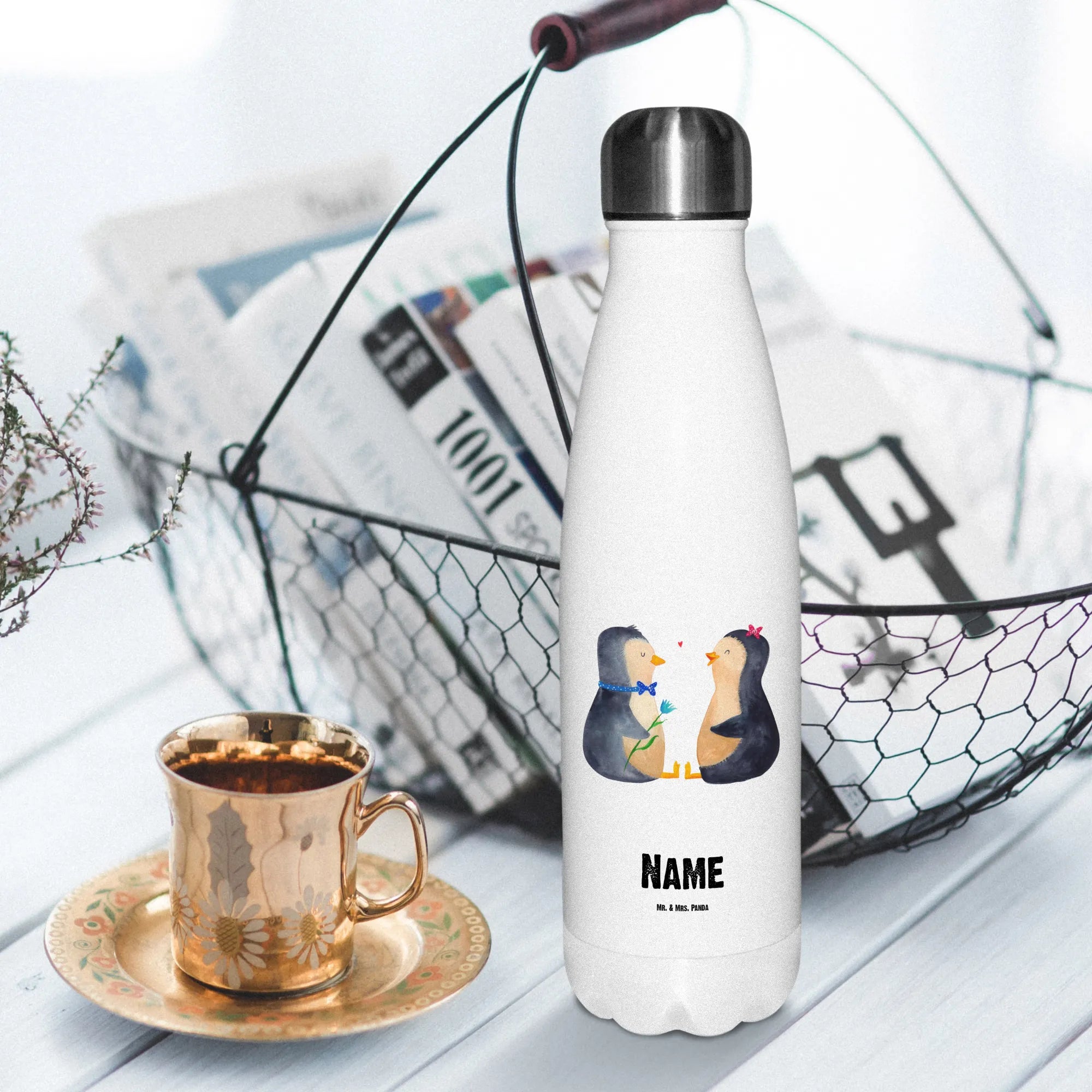 Bist du auf der Suche nach dem perfekten Geschenk für deine große Liebe? Dann ist die personalisierte Thermosflasche mit dem süßen Pinguin Pärchen aus der Pinguin-Kollektion von Mr. & Mrs. Panda genau das Richtige für dich! Diese charmante Trinkflasche ist nicht nur praktisch, sondern auch ein ganz besonderes Liebesgeschenk.