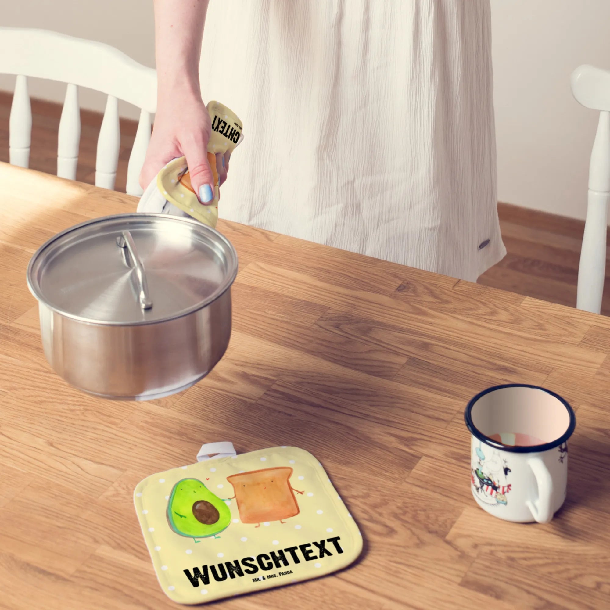 Entdecke die perfekten personalisierten Topflappen von Mr. & Mrs. Panda, die das Herz eines jeden Avocado-Liebhabers höher schlagen lassen! Mit ihrem charmanten Motiv - einer süßen Avocado und einem niedlichen Toast, die sich verliebt an den Händen halten - zaubern diese Topflappen ein Lächeln in jede Küche.