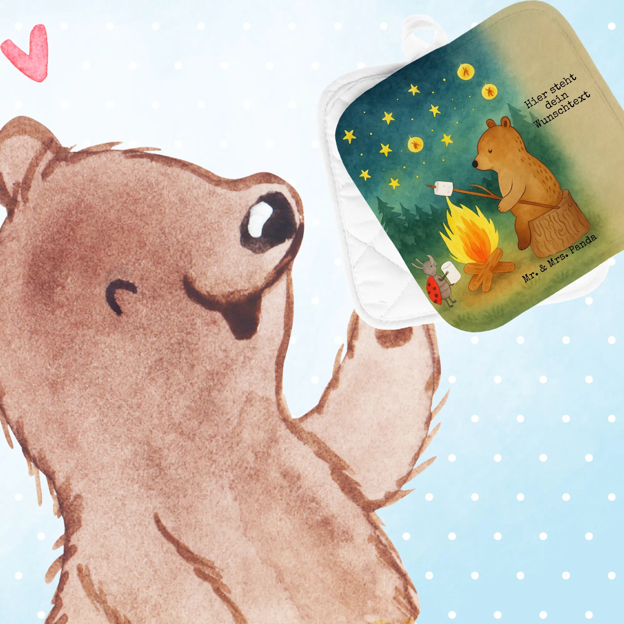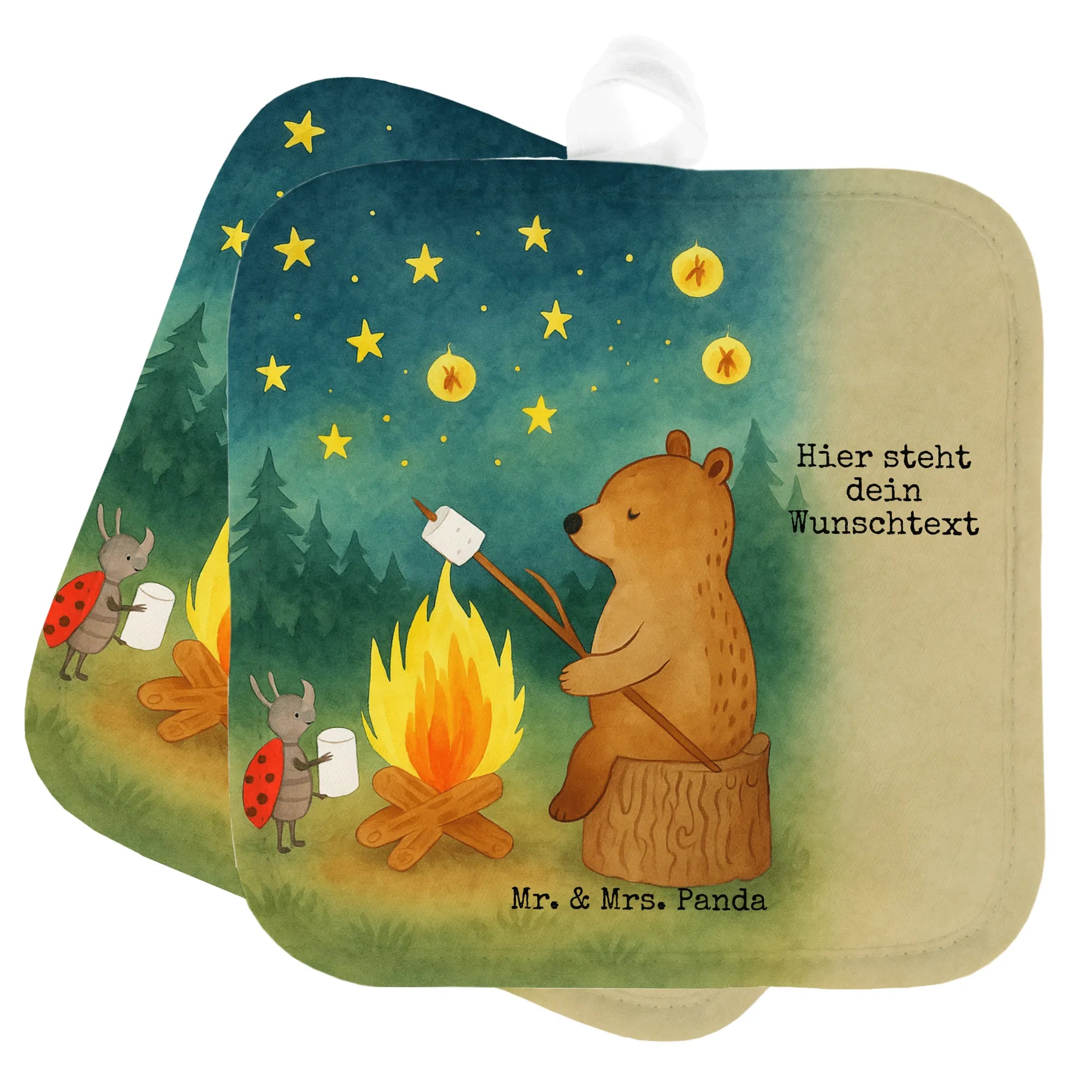 Personalisierte Topflappen Bär & Marienkäfer Lagerfeuer Design