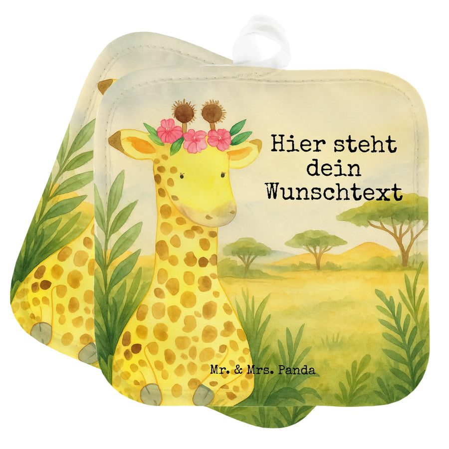 Personalisierte Topflappen Giraffe Blumenkranz Design