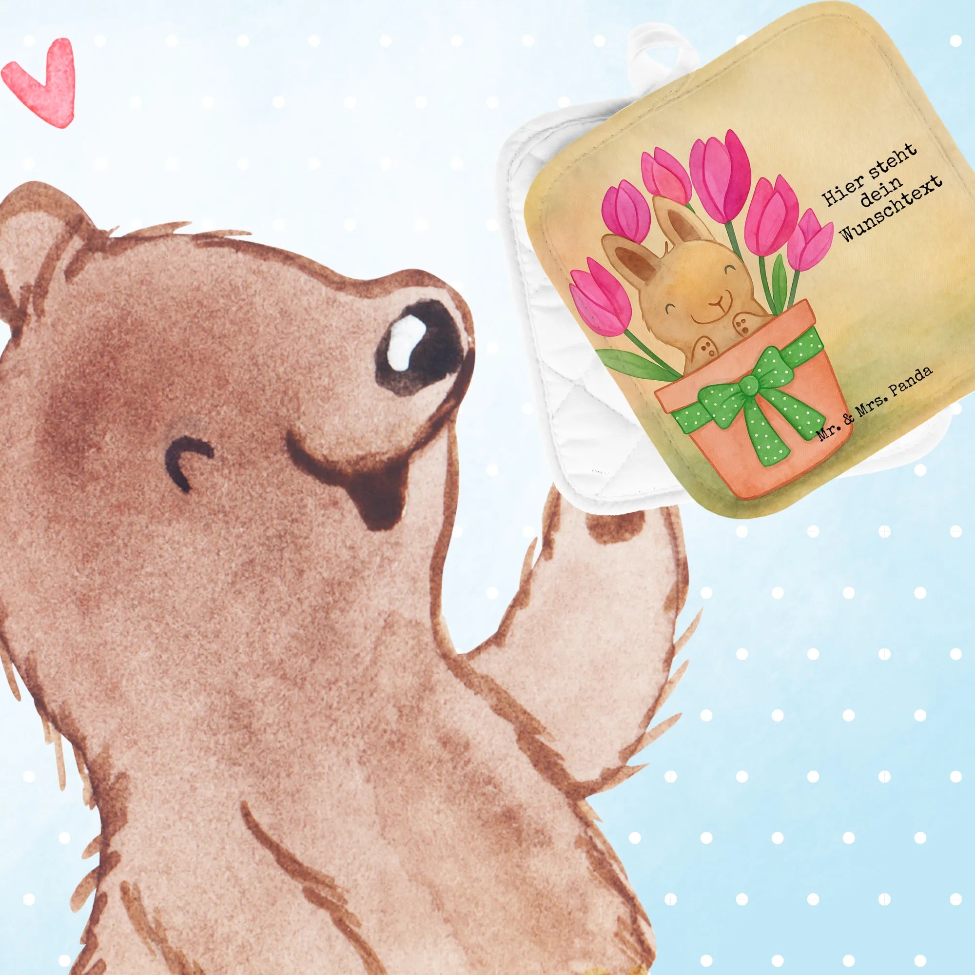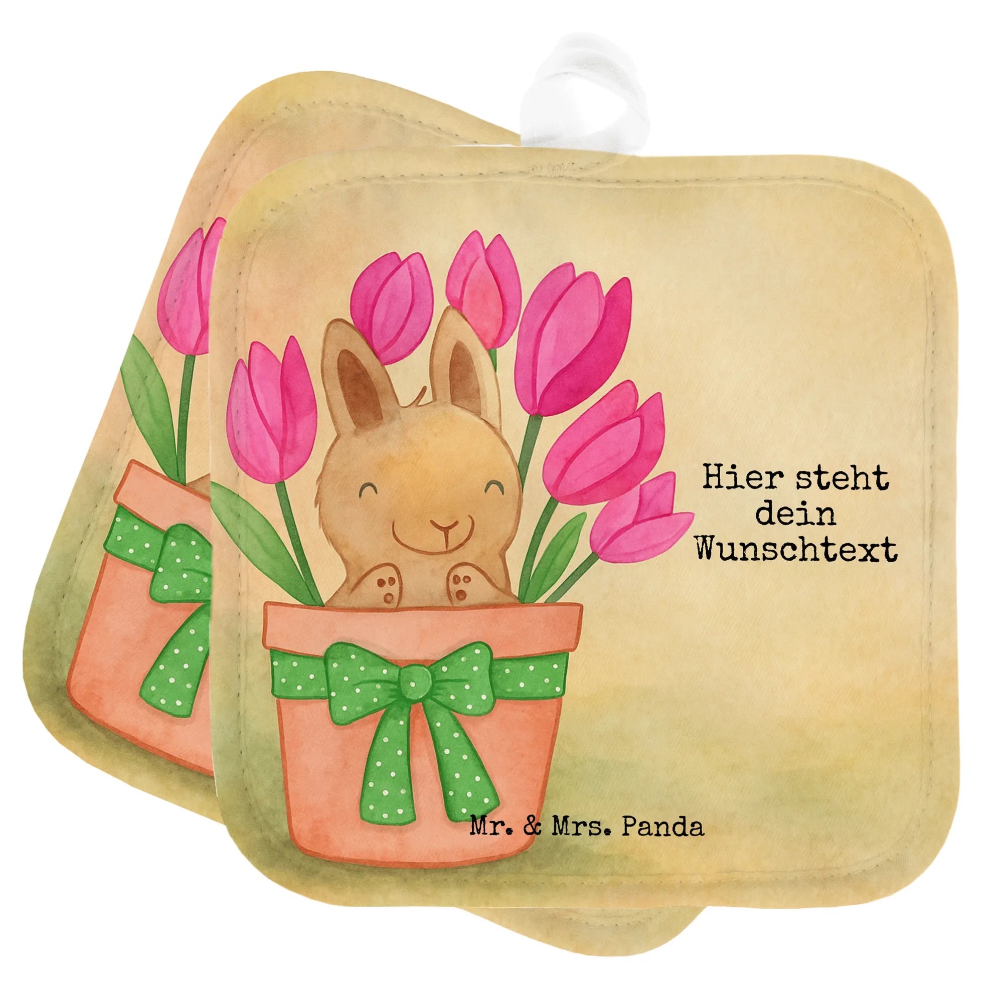 Personalisierte Topflappen Hase Tulpen Design – Mr. & Mrs. Panda