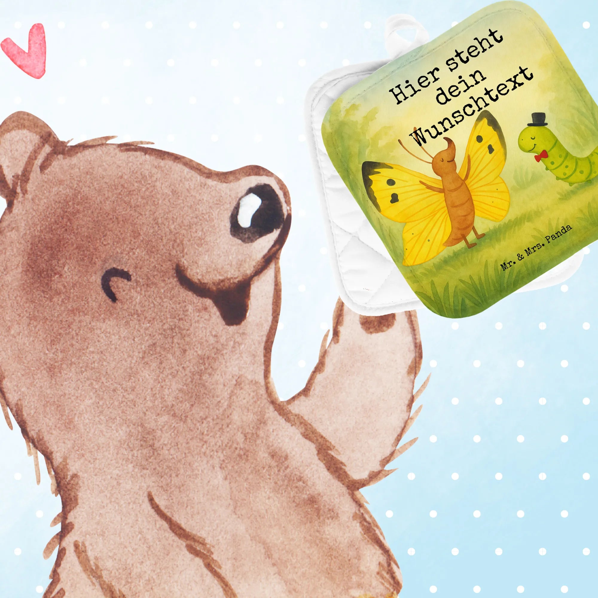 Personalisierte Topflappen Raupe Schmetterling Design