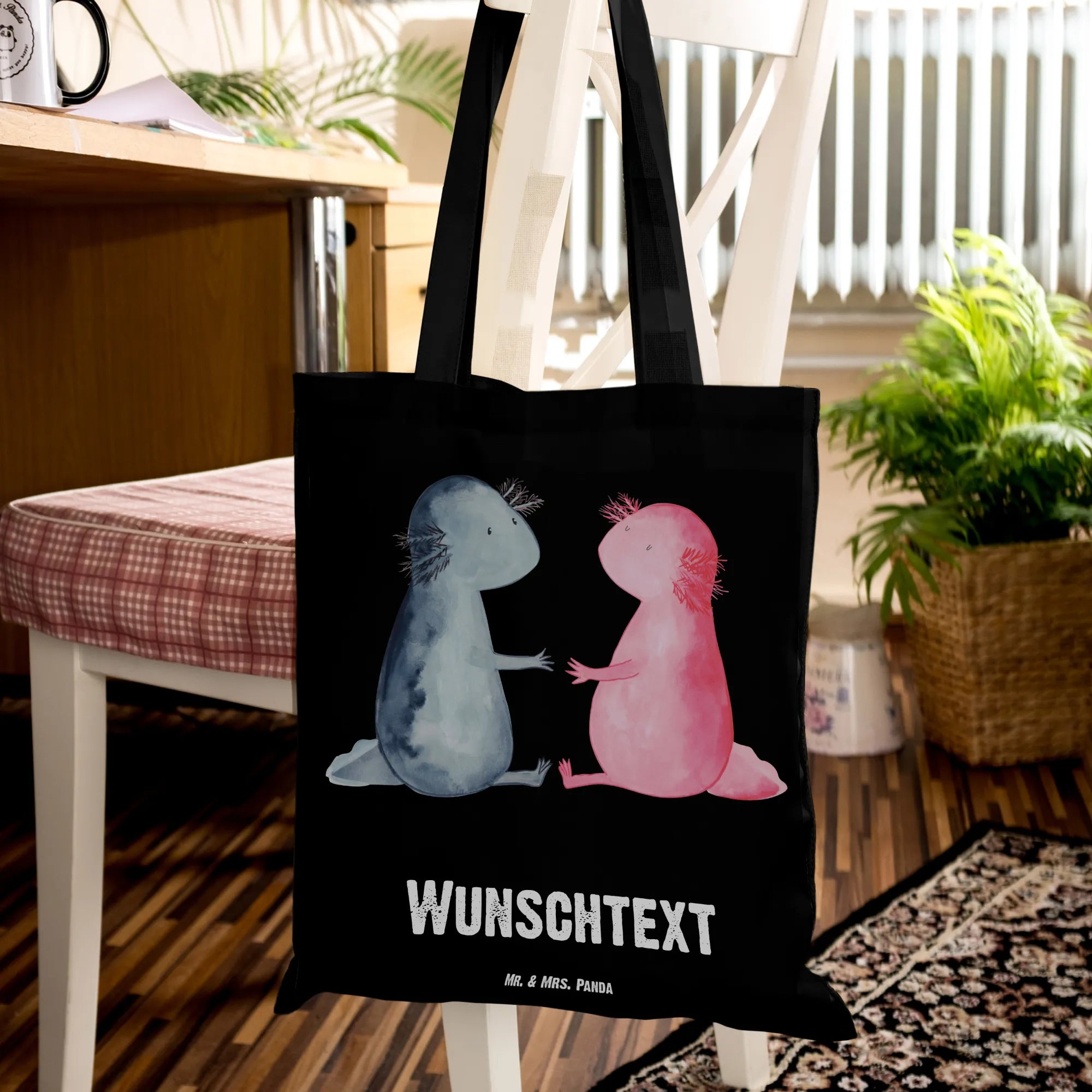 Wenn du auf der Suche nach einem ganz besonderen Geschenk bist, dann haben wir die perfekte Lösung für dich: Unsere personalisierte Tragetasche mit dem süßen Axolotl-Motiv "Liebe"! Diese wundervoll gestaltete Tasche von Mr. & Mrs. Panda ist nicht nur praktisch, sondern auch ein echtes Liebesbeweis für deine Herzensmenschen. Die beiden niedlichen Axolotl halten Händchen und strahlen eine romantische Atmosphäre aus, die einfach zum Verlieben ist.