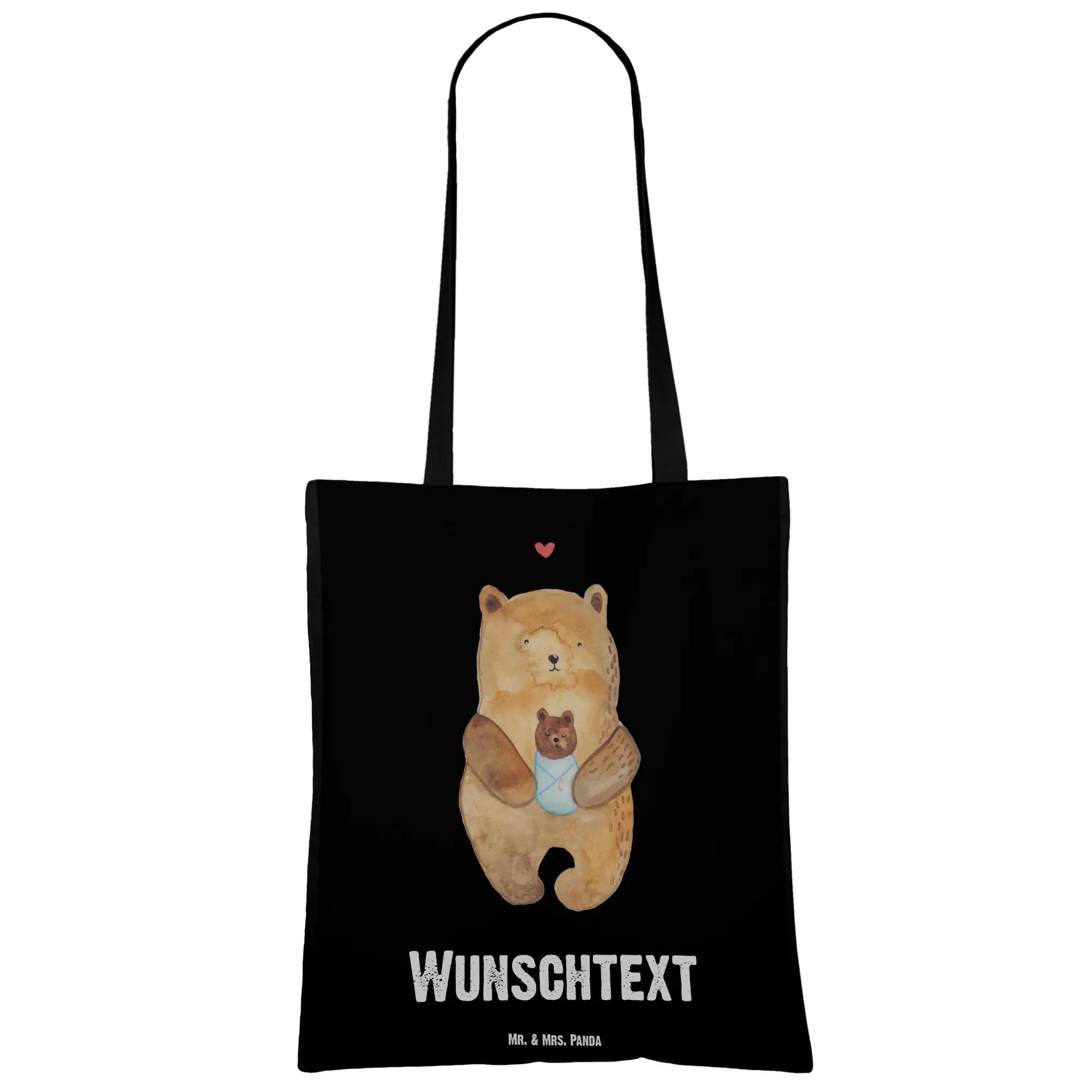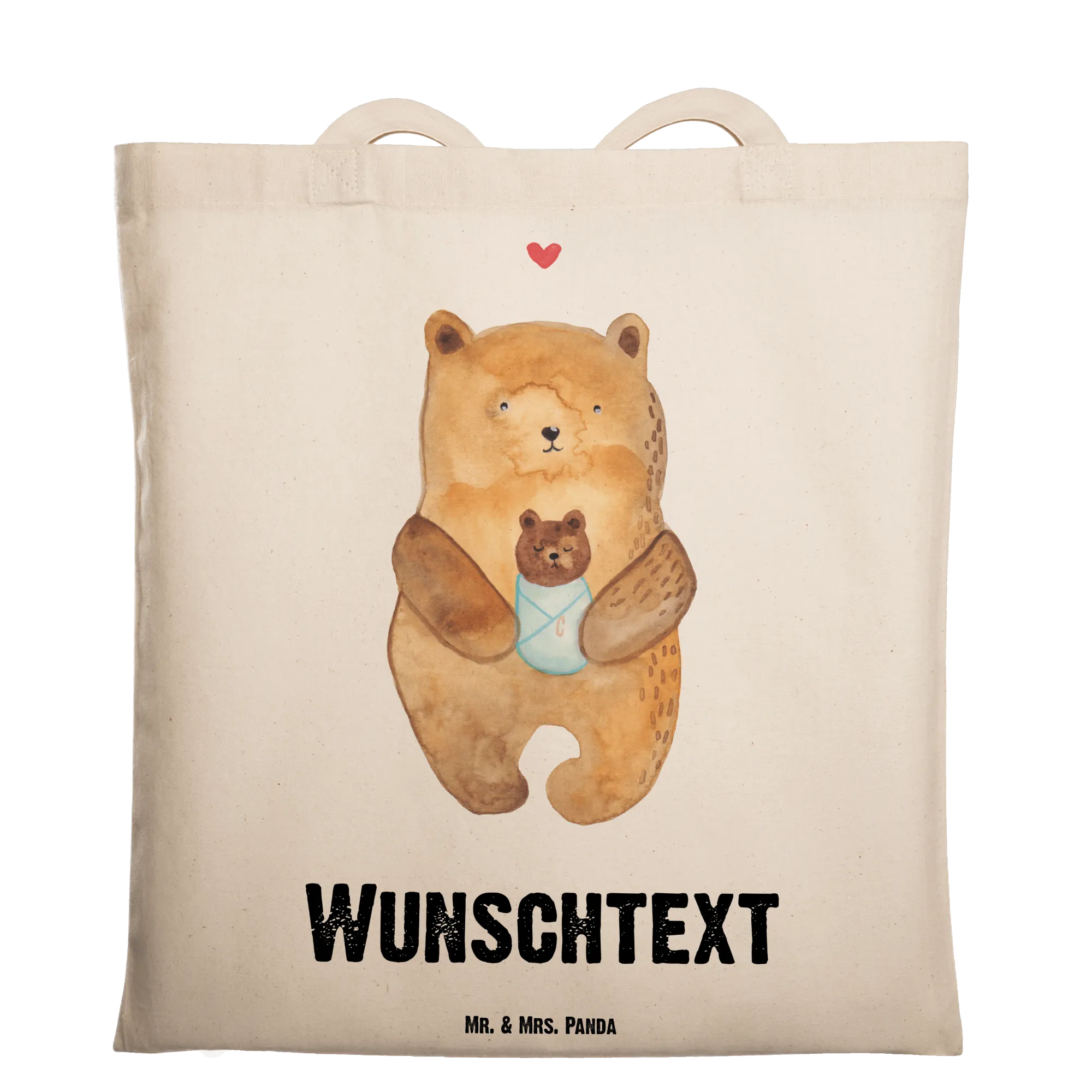 Entdecke unsere liebevoll gestaltete personalisierte Tragetasche mit dem zauberhaften Motiv "Bär mit Baby" aus der Bären-Kollektion von Mr. & Mrs. Panda!