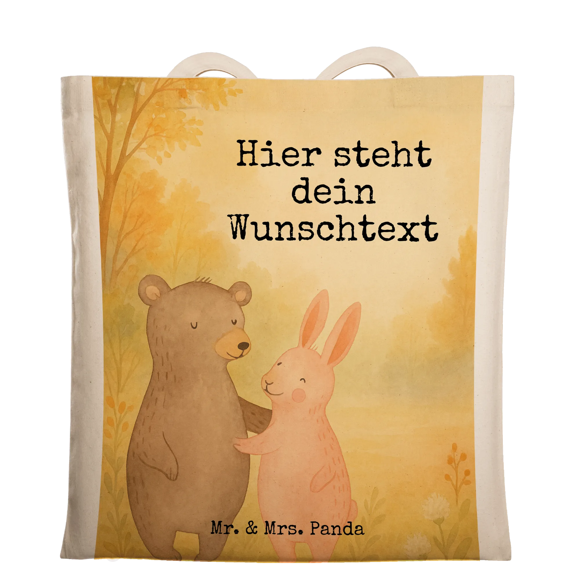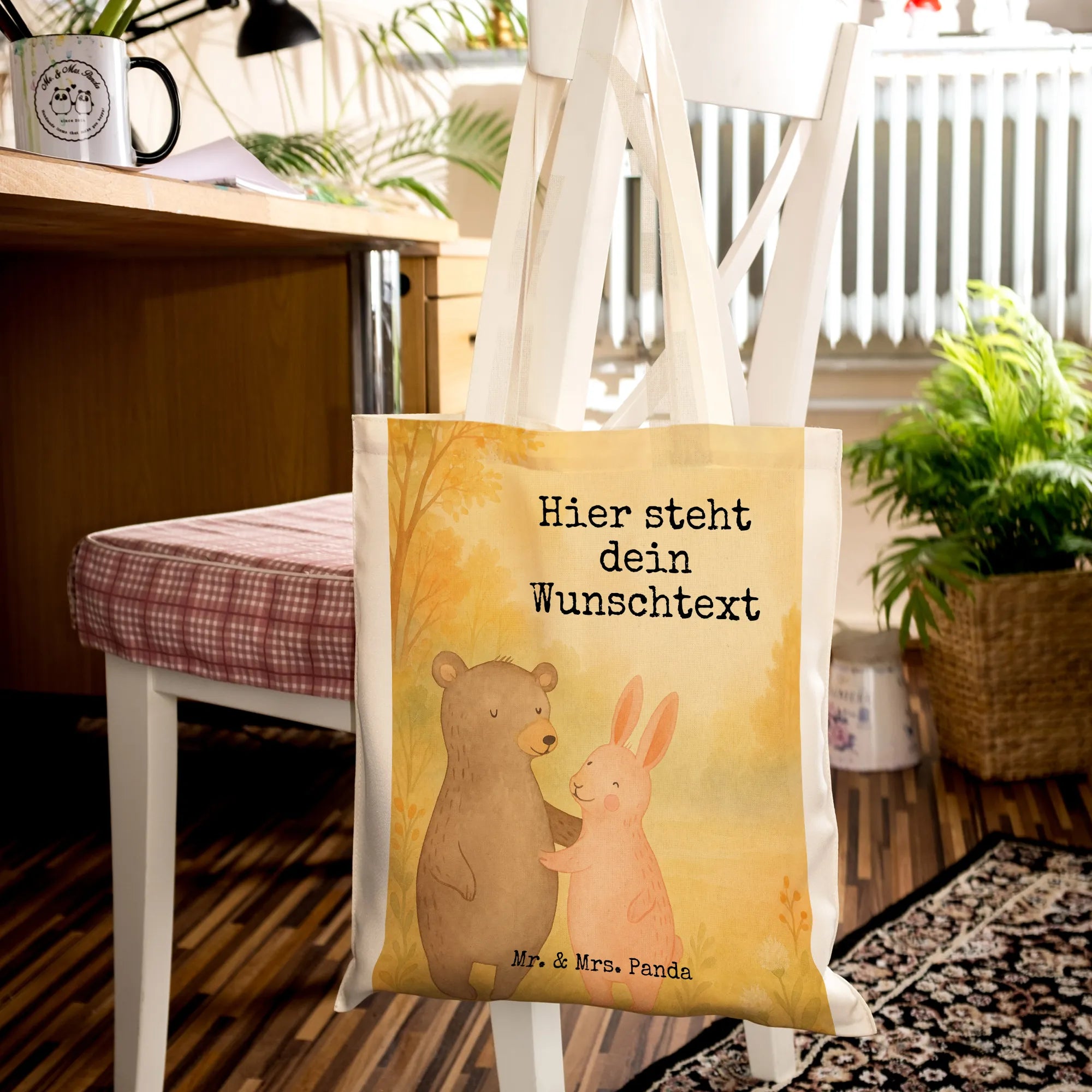 Personalisierte Tragetasche Bär und Hase Umarmen Design