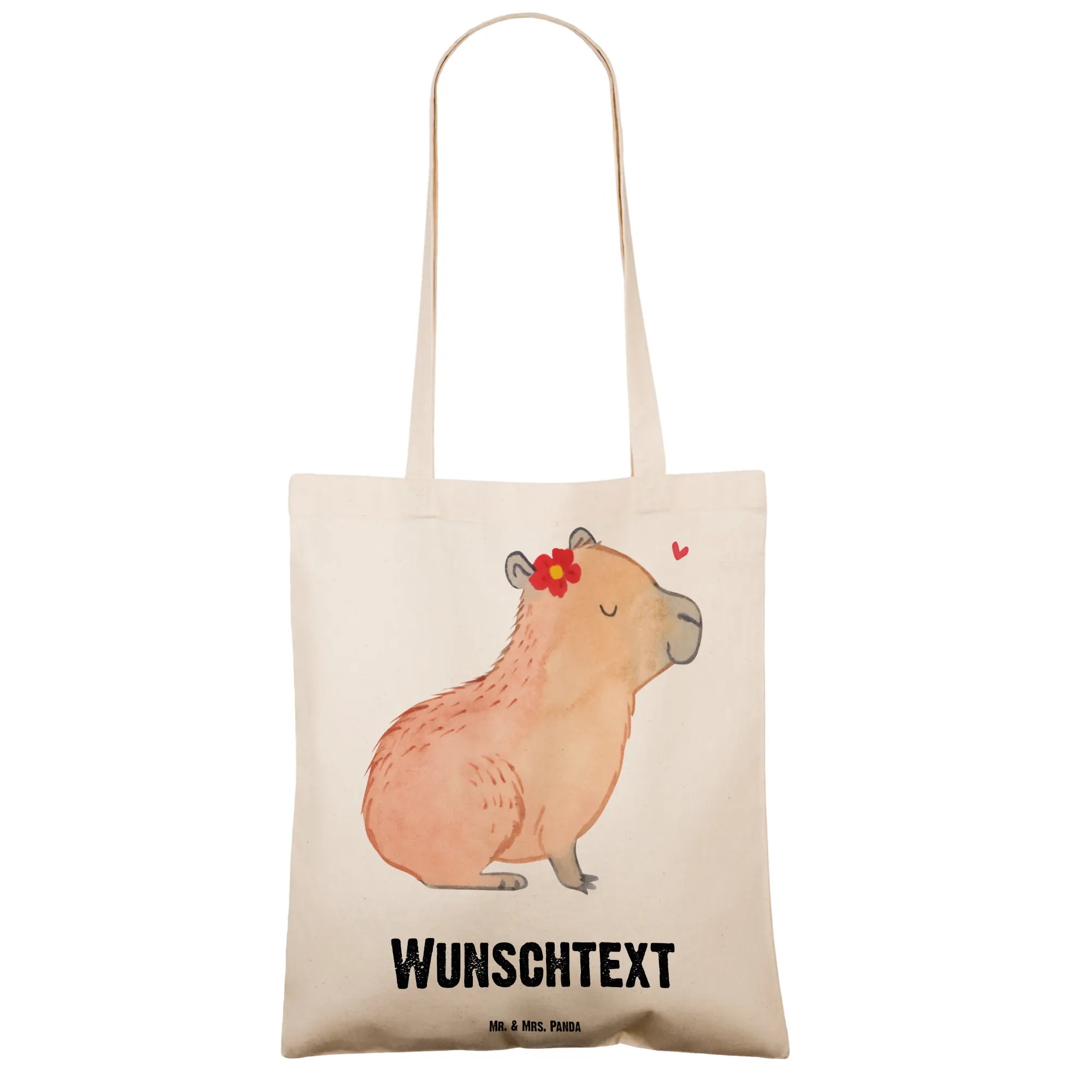 Die personalisierte Tragetasche 'Capybara Blume' aus der Small World Kollektion von Mr. & Mrs. Panda ist das perfekte Geschenk für Tierliebhaber und fröhliche Menschen. Mit ihrem niedlichen Motiv eines entspannten Capybara, das eine Blume im Haar trägt, bringt diese Tasche gute Laune in den Alltag.