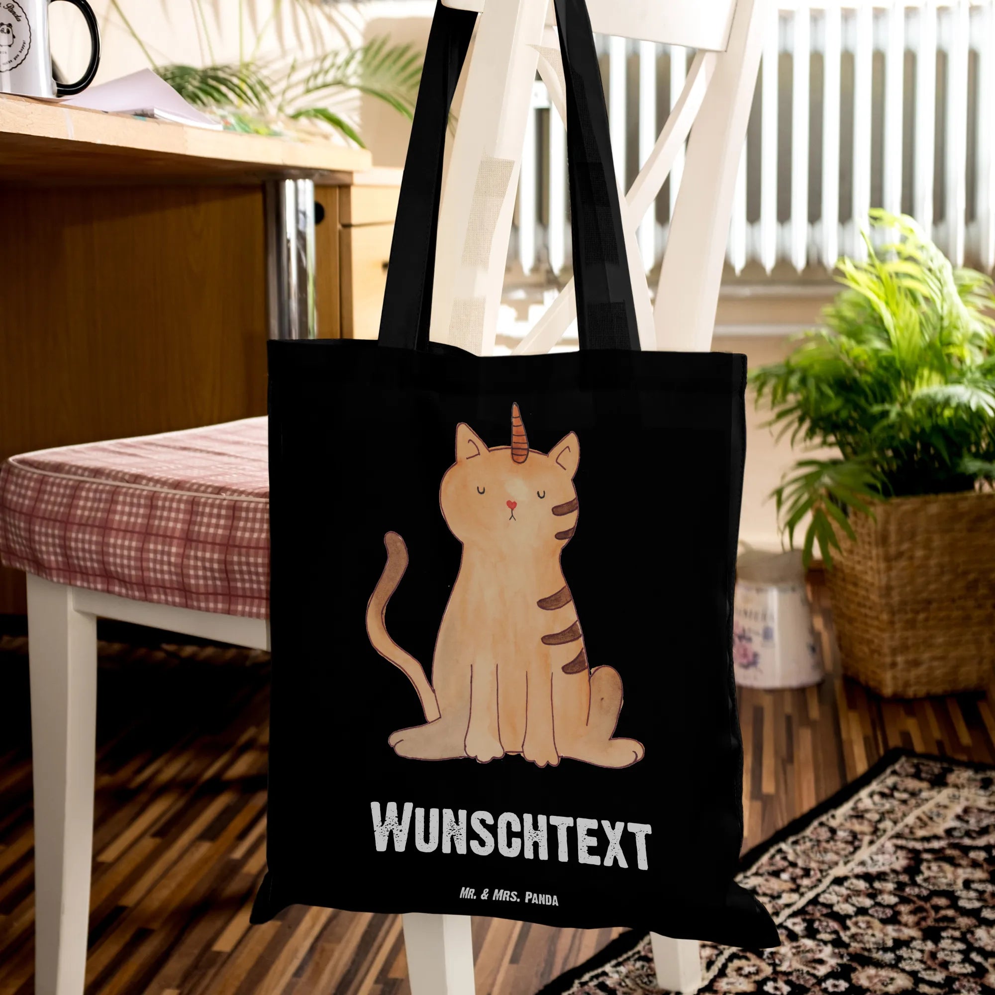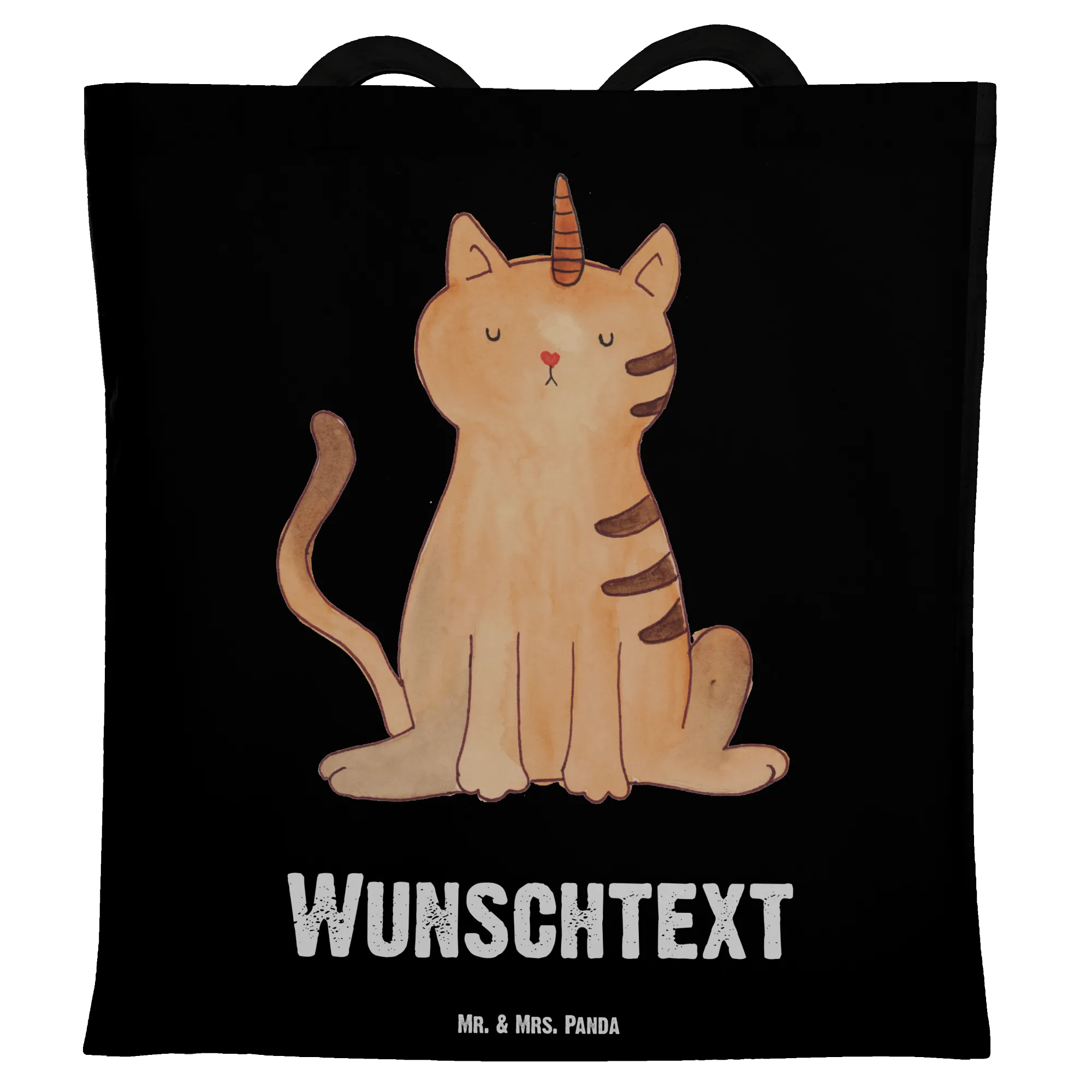 Personalisierte Tragetasche Einhorn Katze - Schwarz