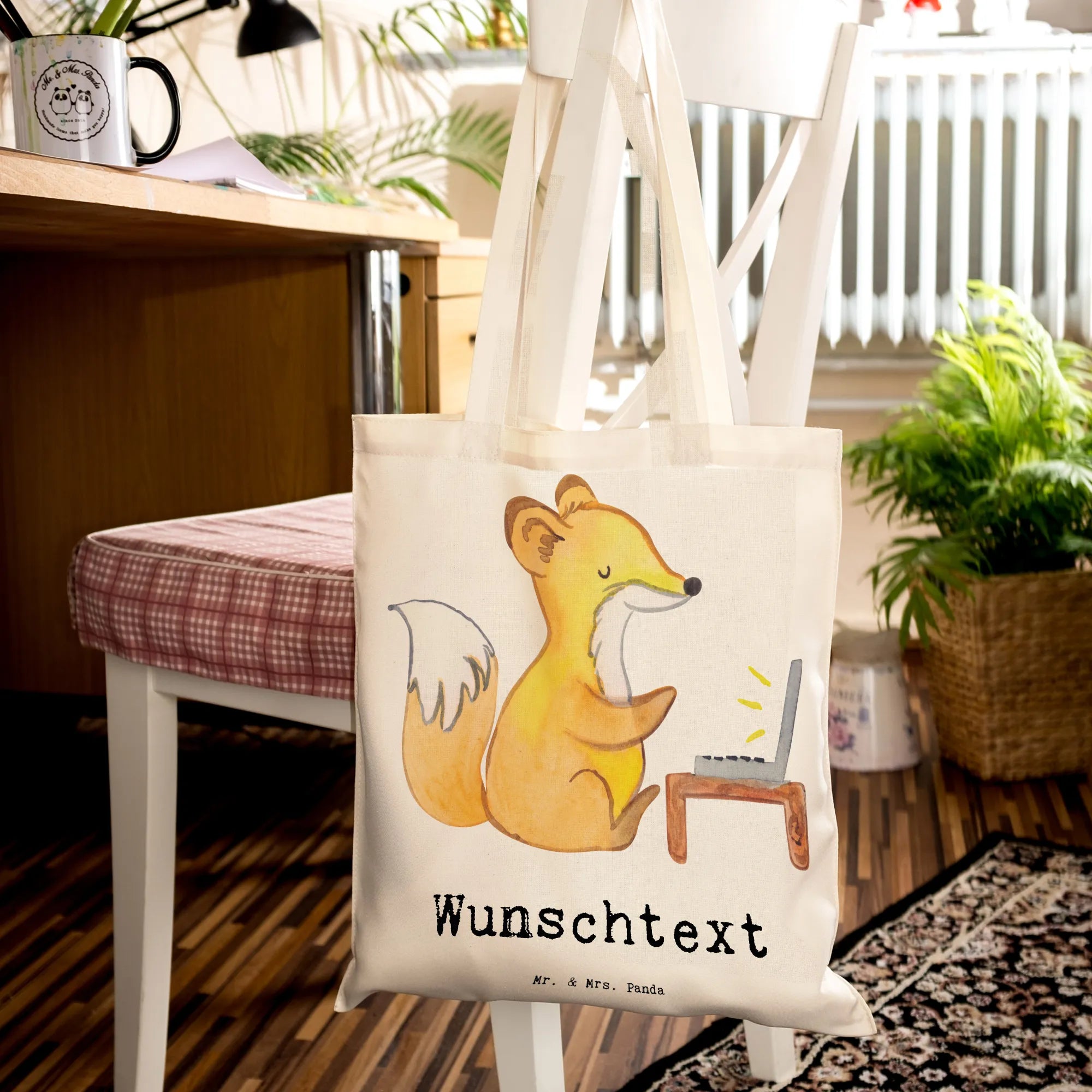 Das süße Design zeigt einen auffälligen Fuchs, der konzentriert vor einer Schreibmaschine sitzt, was sie zu einem witzigen und gleichzeitig liebevollen Geschenk für den Arbeitsplatz macht. Ob als Dankeschön für die Unterstützung im Büro oder als Abschiedsgeschenk zum Ruhestand – diese Tasche ist vielseitig einsetzbar und kommt immer gut an.