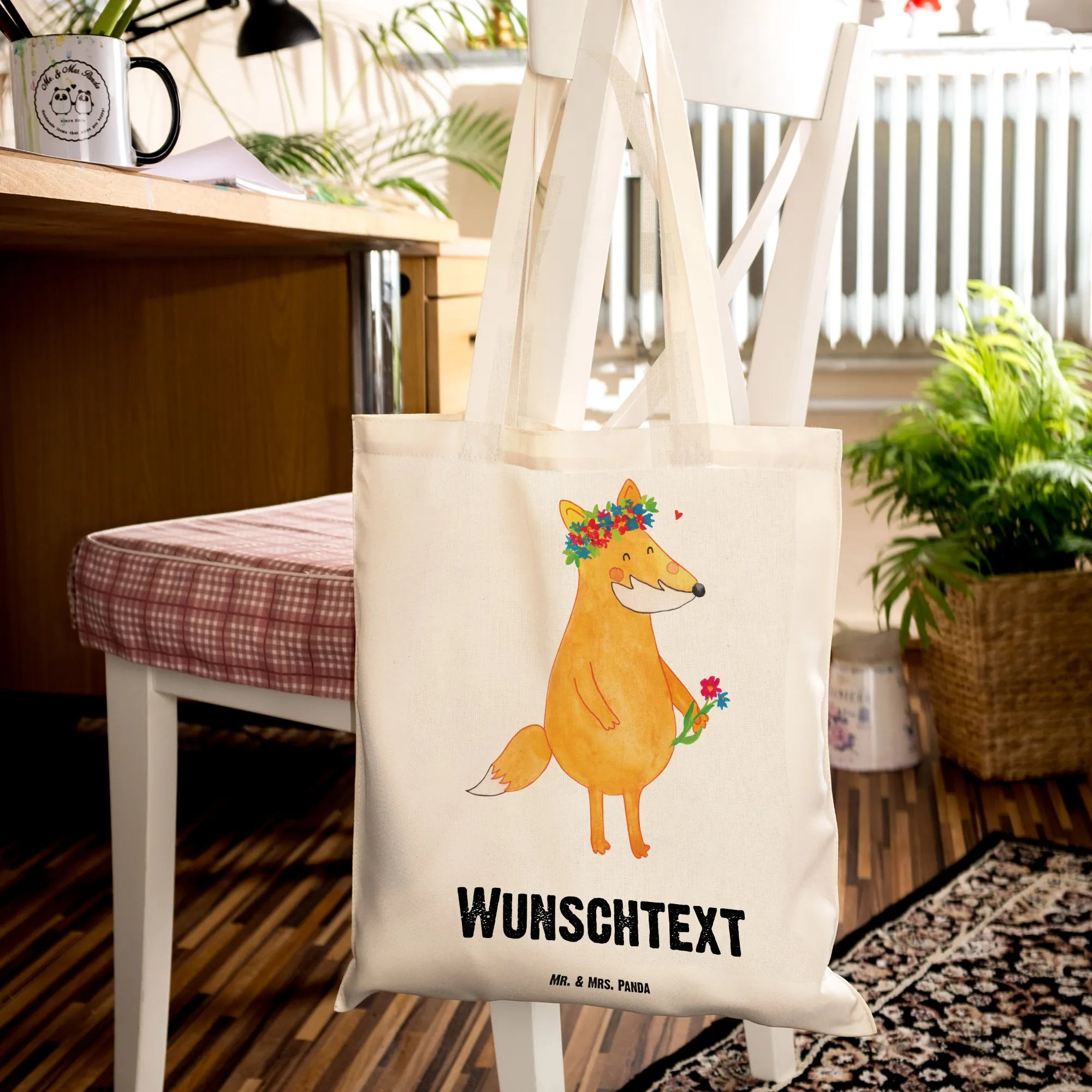 Personalisierte Tragetasche Fuchs Blumenliebe – Mr. & Mrs. Panda