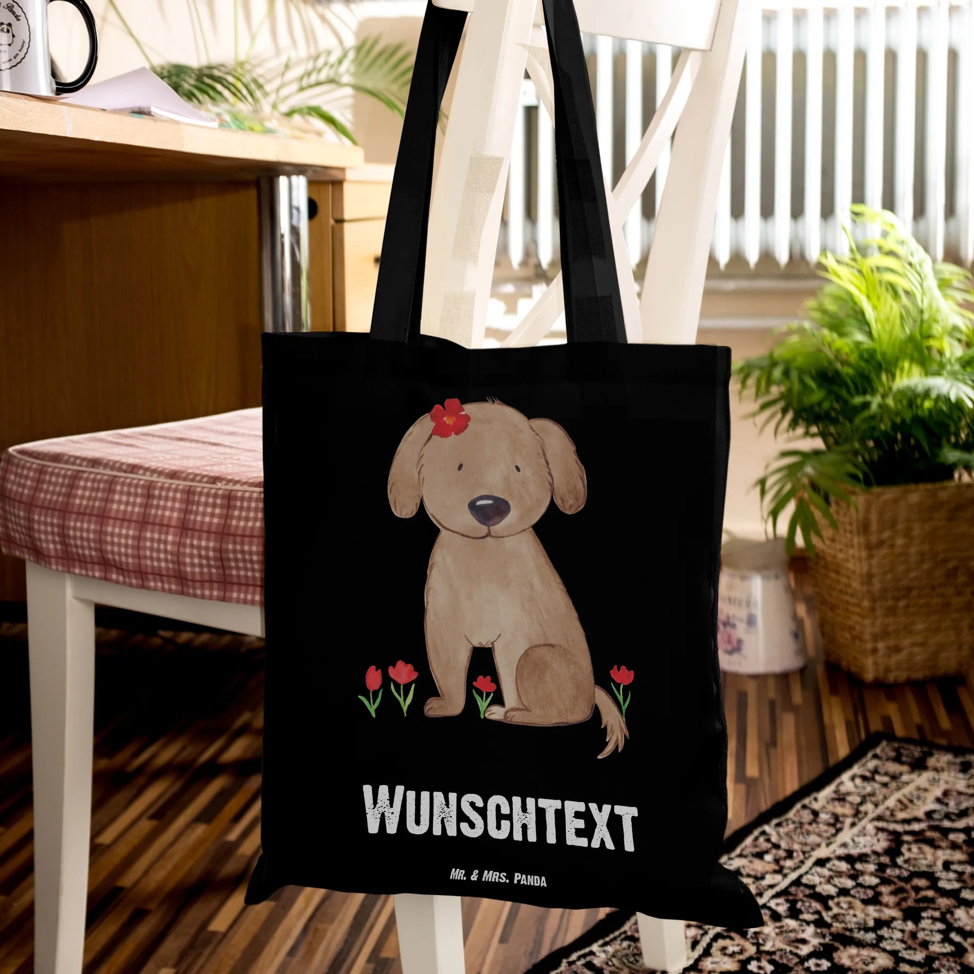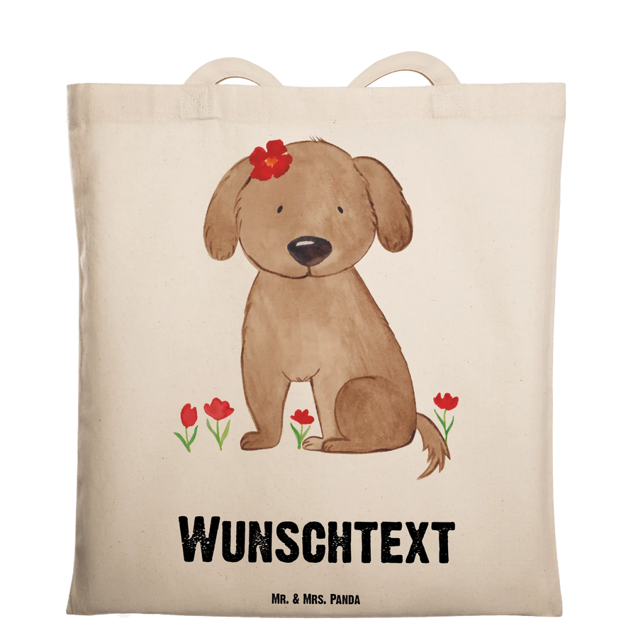 Die personalisierte Tragetasche "Hund Hundedame" aus der zauberhaften Hunde Kollektion von Mr. & Mrs. Panda ist das perfekte Geschenk für Hundeliebhaber und Hundebesitzer. Diese hochwertige Tragetasche wird aus 100% Baumwolle gefertigt und ist mit einer niedlichen Hundedame mit einer Blume auf dem Kopf bedruckt.