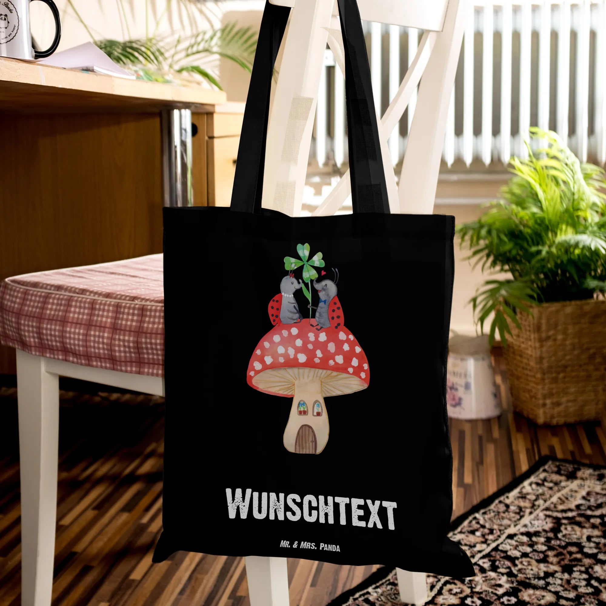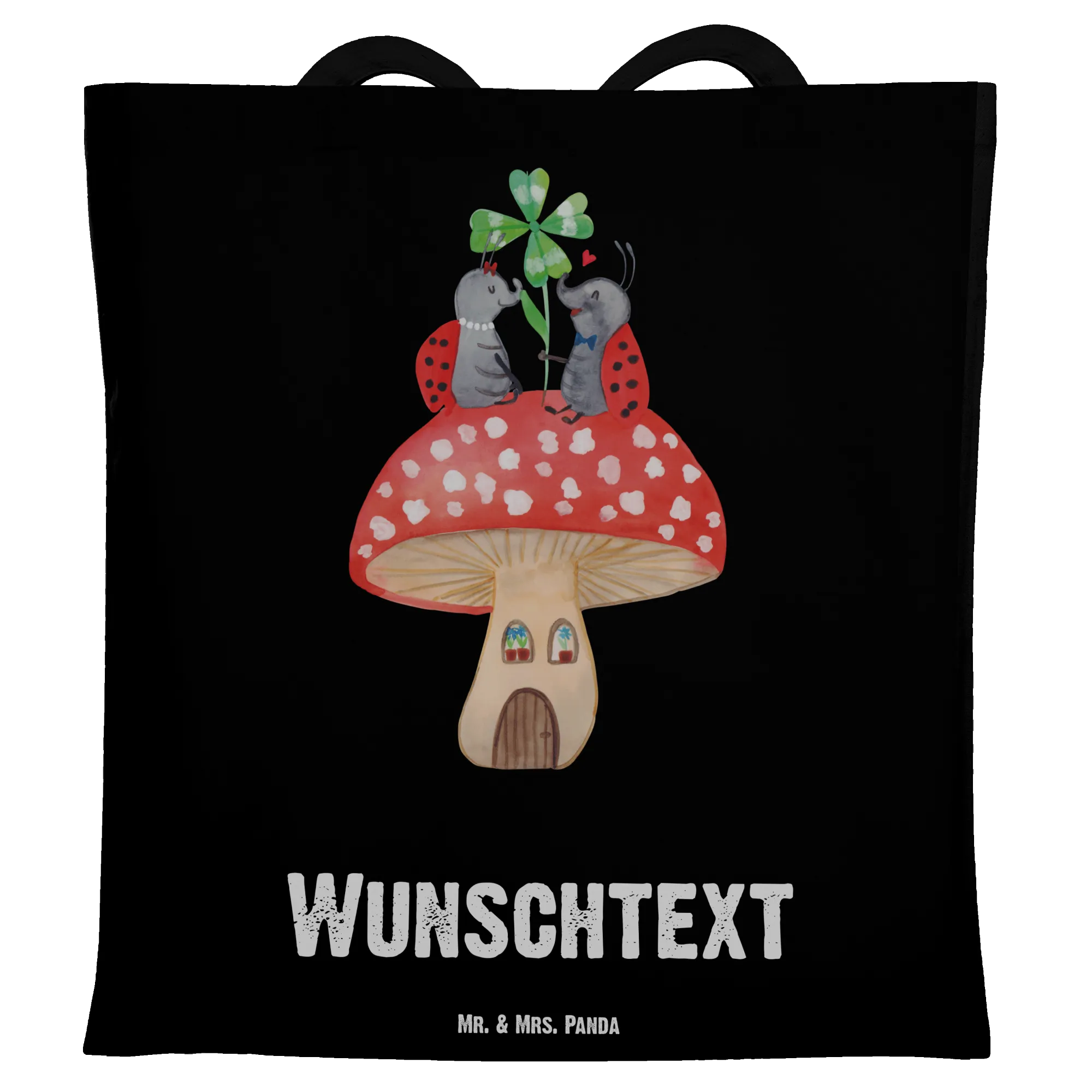 Personalisierte Tragetasche Marienkäfer Paar Fliegenpilz - Schwarz