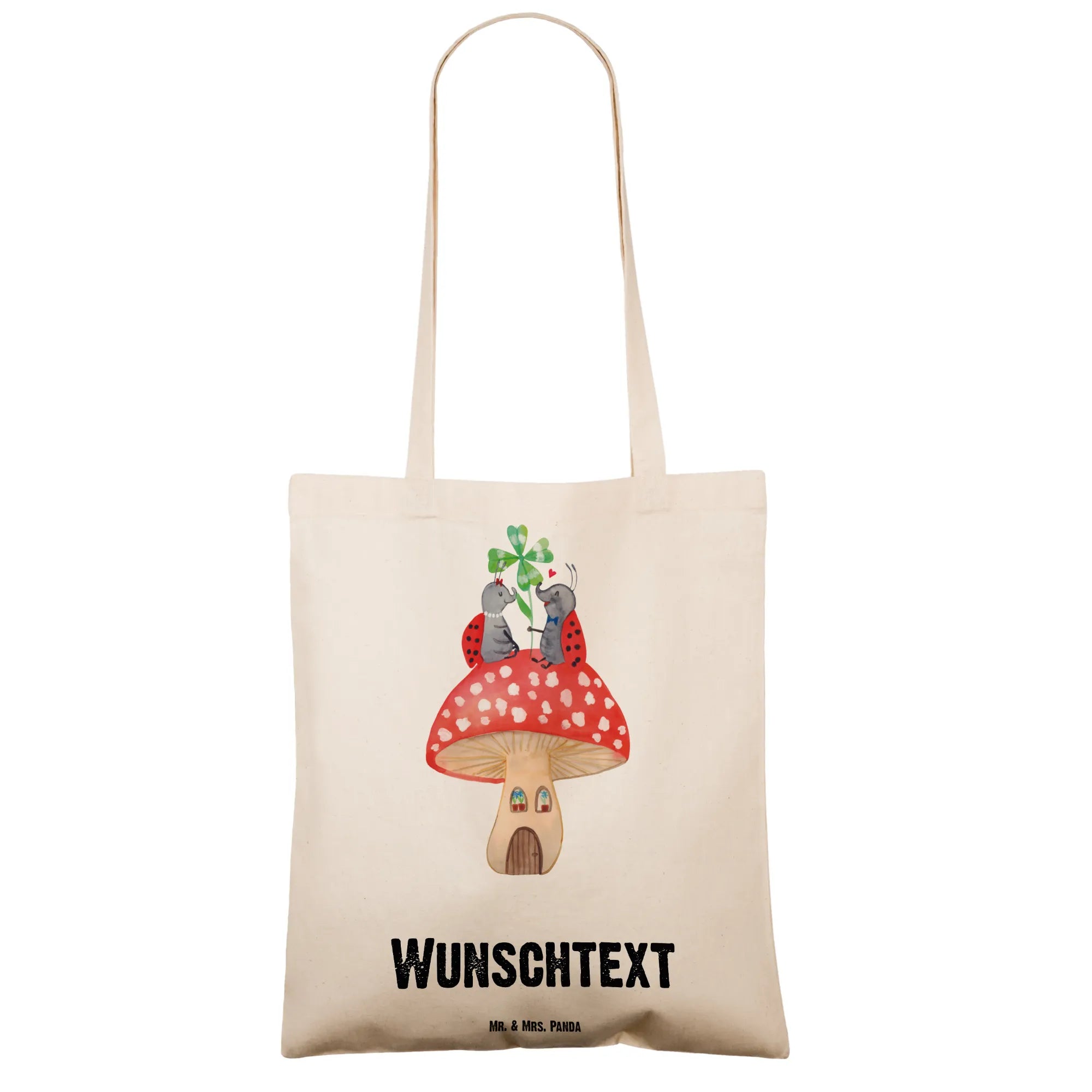 Entdecke die perfekte Kombination aus Nützlichkeit und Charme mit unserer personalisierten Tragetasche 'Marienkäfer Paar Fliegenpilz' aus der geliebten Small World Kollektion von Mr. & Mrs. Panda! Diese Tasche, hochwertig bedruckt mit einem zuckersüßen Motiv von zwei Marienkäfern auf einem Fliegenpilz, ist mehr als nur ein praktisches Accessoire – sie ist ein Stück Lebensfreude!