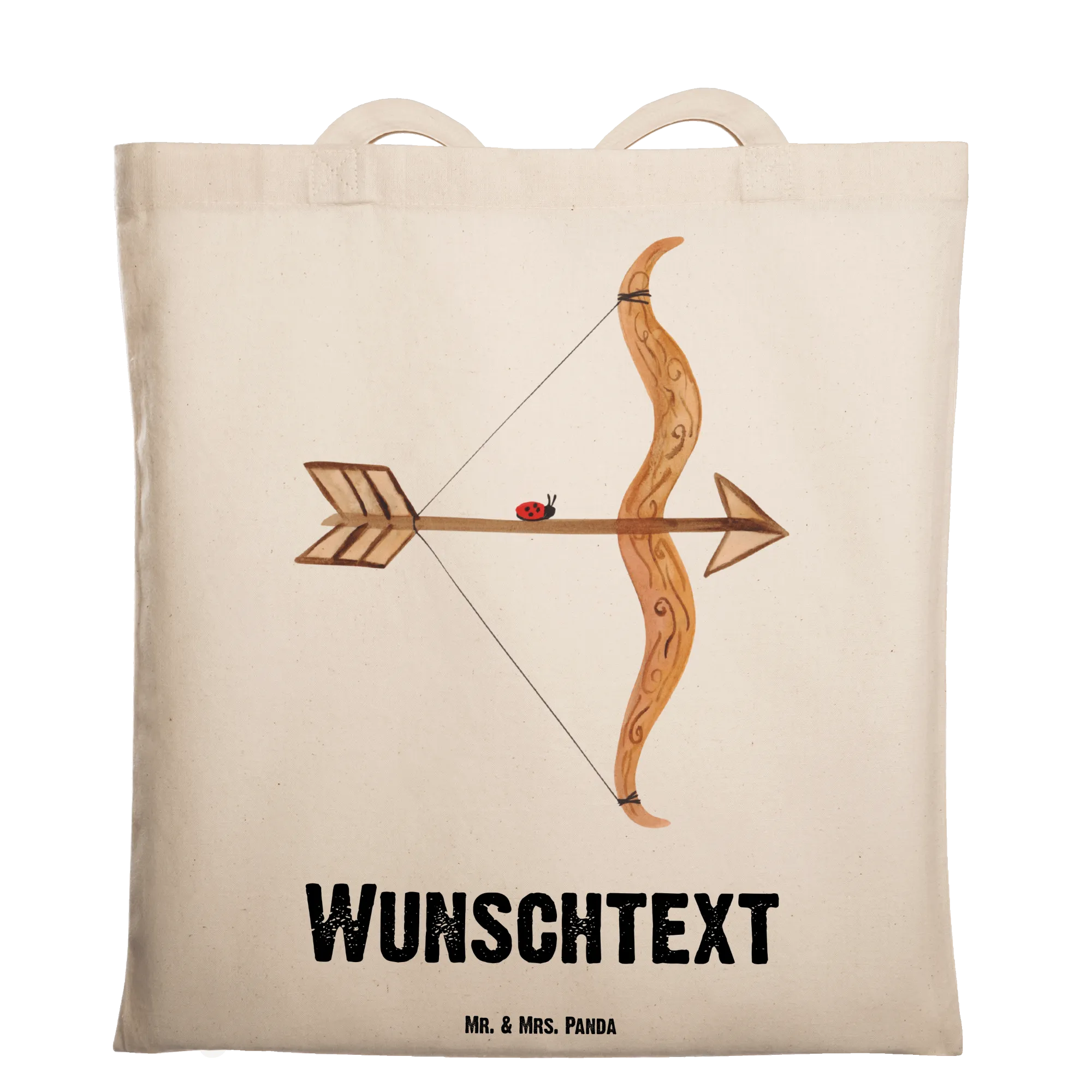 Die personalisierte Tragetasche mit dem wunderbaren Motiv des Sternzeichens Schütze von Mr. & Mrs. Panda ist das perfekte Geschenk für Freunde und Familie, die im Dezember oder November Geburtstag haben oder einfach die positiven Eigenschaften des Schützen schätzen.