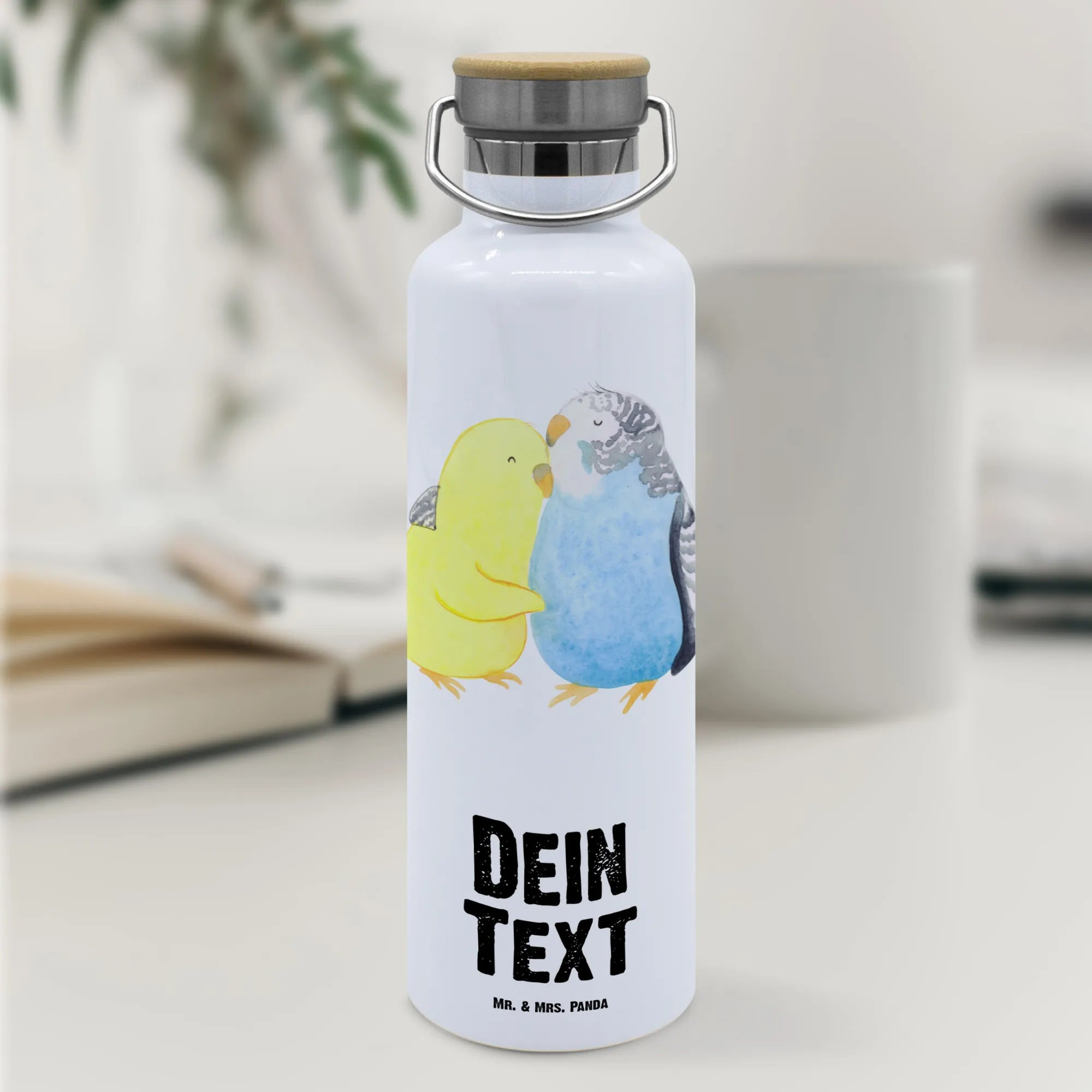 Entdecke die bezaubernde personalisierte Trinkflasche mit dem Motiv 'Wellensittich Liebe' aus der Liebe Kollektion von Mr. & Mrs. Panda. Diese einzigartige und wunderschöne Trinkflasche ist nicht nur ein praktischer Begleiter für jeden Tag, sondern auch ein liebevolles Geschenk für deine Liebsten. Ob für den Freund, die Freundin, den Ehepartner oder als besonderen Ausdruck deiner Zuneigung – diese Trinkflasche drückt aus, was du fühlst.