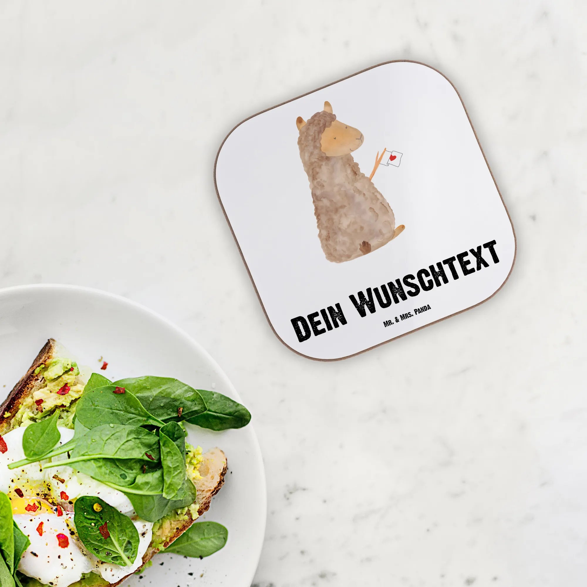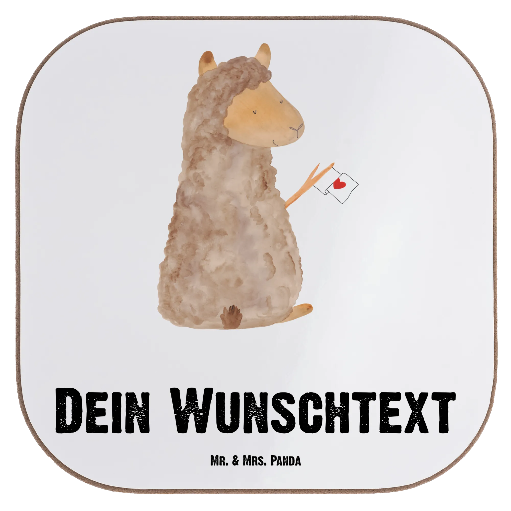 Du suchst das perfekte Geschenk für einen Alpaka-Liebhaber? Dann sind unsere personalisierten Untersetzer mit dem süßen Alpaka Fahne-Motiv genau das Richtige für dich!
