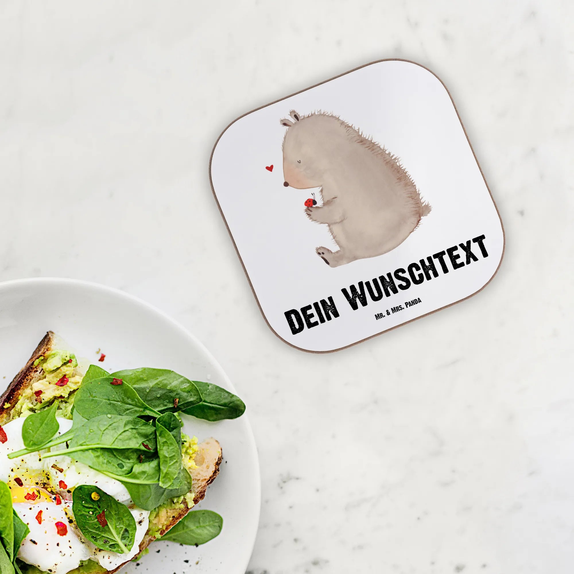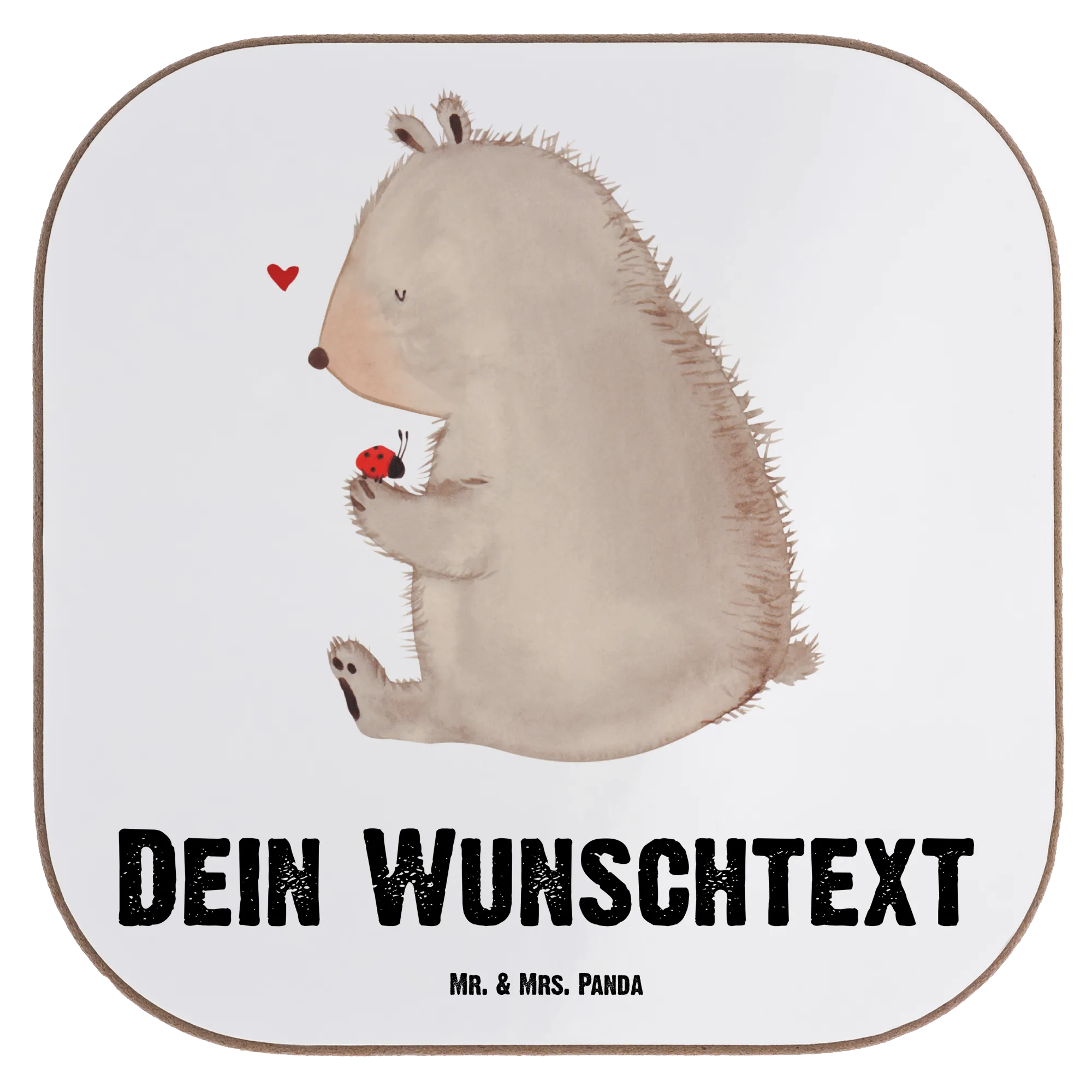 Mit dem niedlichen Motiv "Bär mit Marienkäfer" bringst du nicht nur einen Hauch von Liebe und Freiheit in dein Zuhause, sondern schaffst auch einen besonderen Moment beim gemeinsamen Trinken mit Freunden oder der Familie. Jeder Untersetzer ist einzigartig und kann mit deinem Wunschnamen oder Wunschtext personalisiert werden.