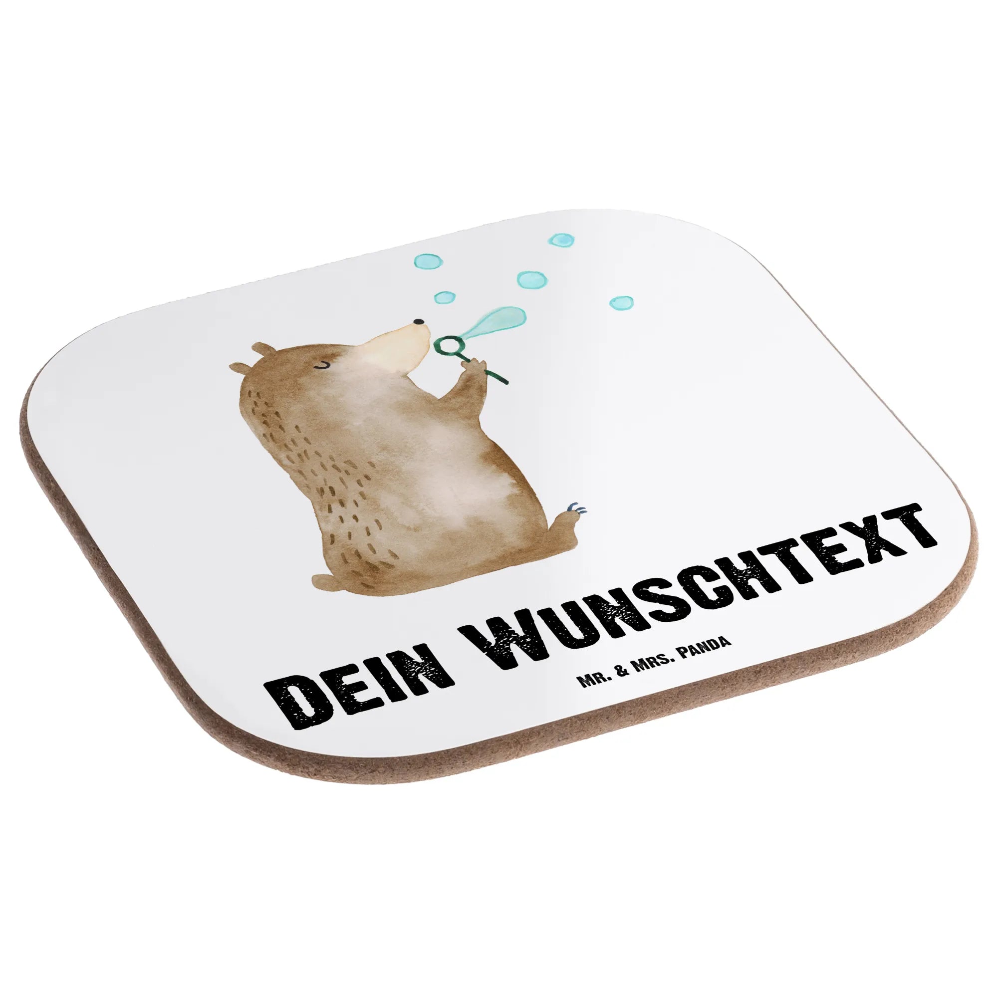 Verschenke Freude mit unserem personalisierten Untersetzer "Bär Seifenblasen" von Mr. & Mrs. Panda! Dieser Untersetzer ist nicht nur ein praktischer Schutz für deine Möbel, sondern auch ein bezauberndes Wohnaccessoire, das jedem Raum ein Lächeln entlockt.