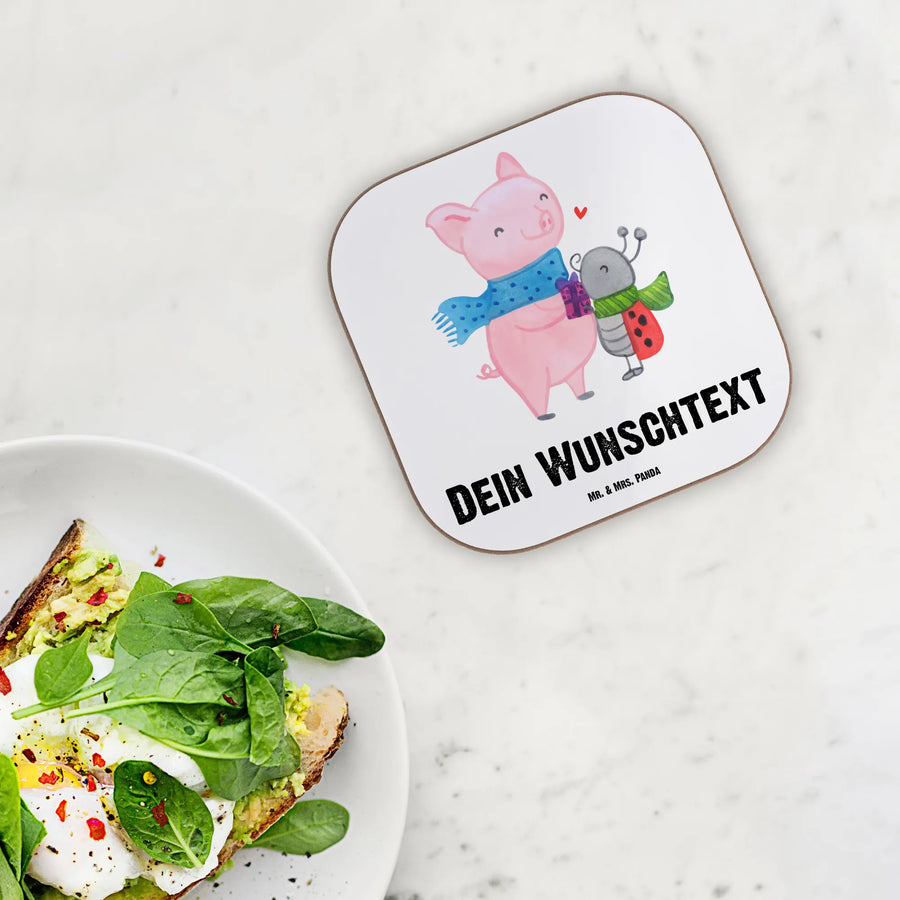 Verschenke Freude und Wärme mit unserem personalisieren Untersetzer Glühschwein Smörle aus der Winter Kollektion von Mr. & Mrs. Panda. Dieser zauberhafte Untersetzer ist nicht nur praktisch, sondern auch ein echtes Schmuckstück für deinen Tisch! Mit einem handgezeichneten, kreativen Glühschwein Design und einem süßen Marienkäfer, der ein schönes Geschenk überbringt, bringt er winterliche Gemütlichkeit in jedes Zuhause. Der Slogan 'When the weather outside is frightful, Glühwein is so delightful.' auf dem Untersetzer spricht die Herzen aller Glühweinliebhaber an und macht jeden Schluck noch genussvoller.