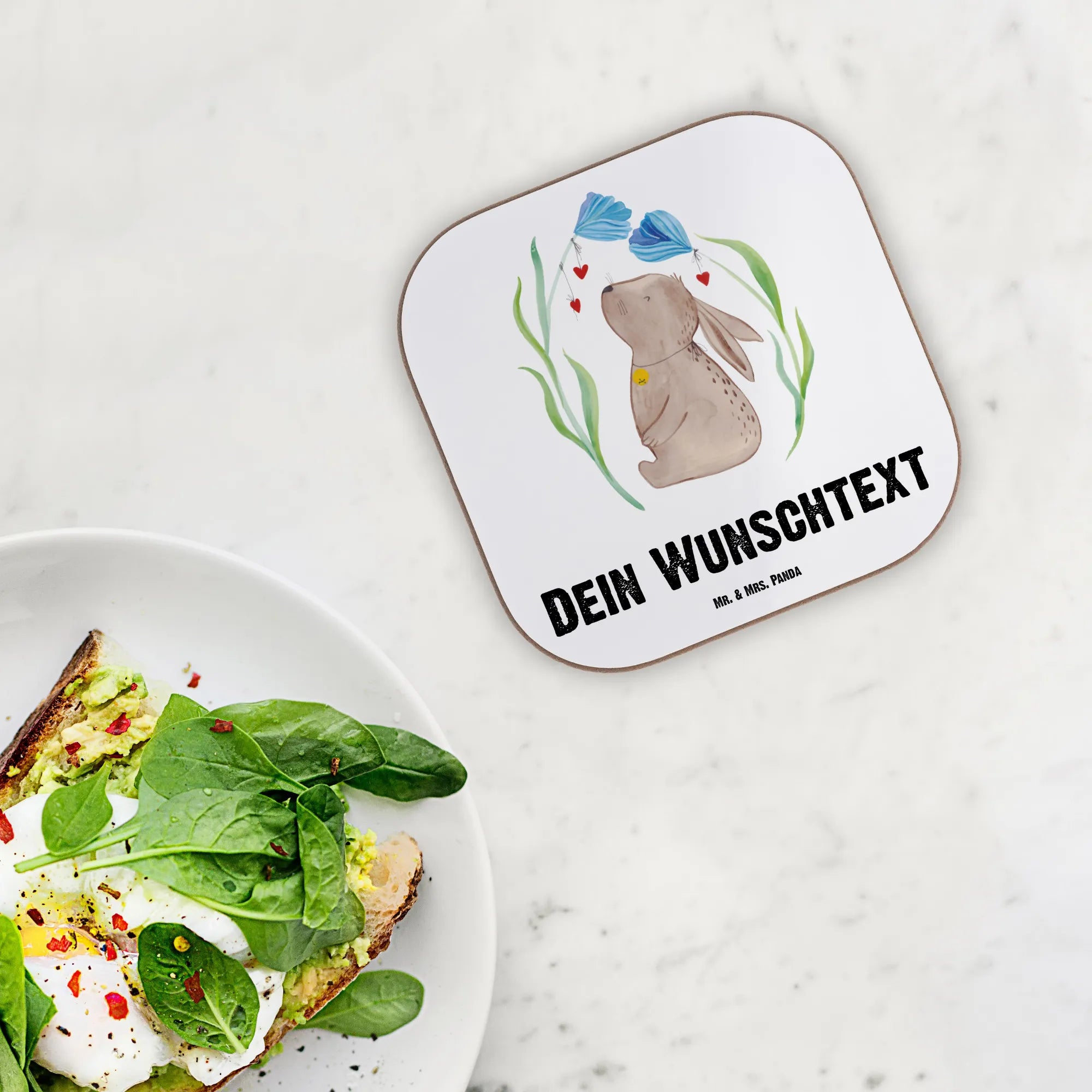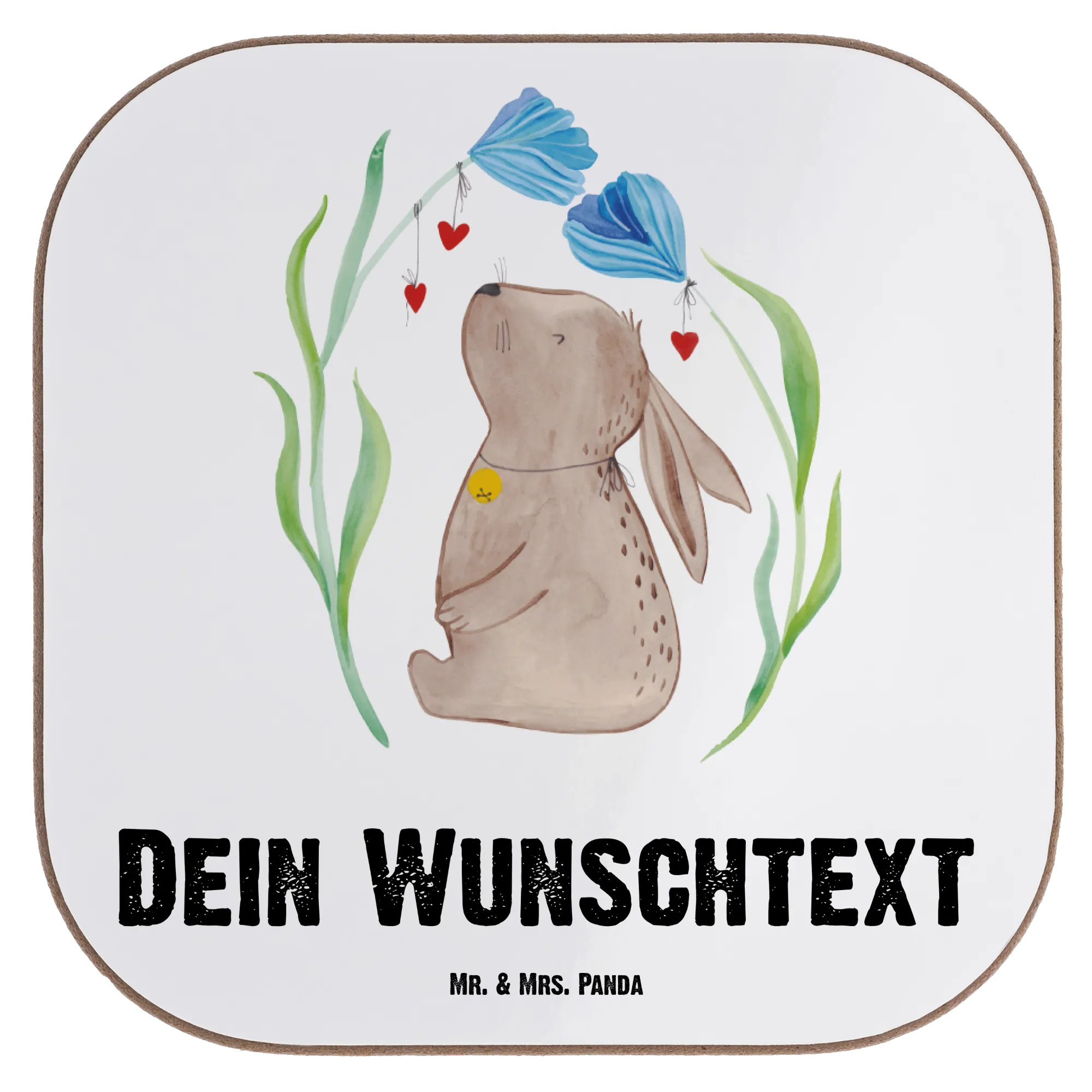 Willkommen in der fröhlichen Welt von Mr. & Mrs. Panda! Unser personalisierter Untersetzer mit dem niedlichen Motiv Hase Blume ist das perfekte Geschenk für jeden Anlass, besonders zu Ostern.