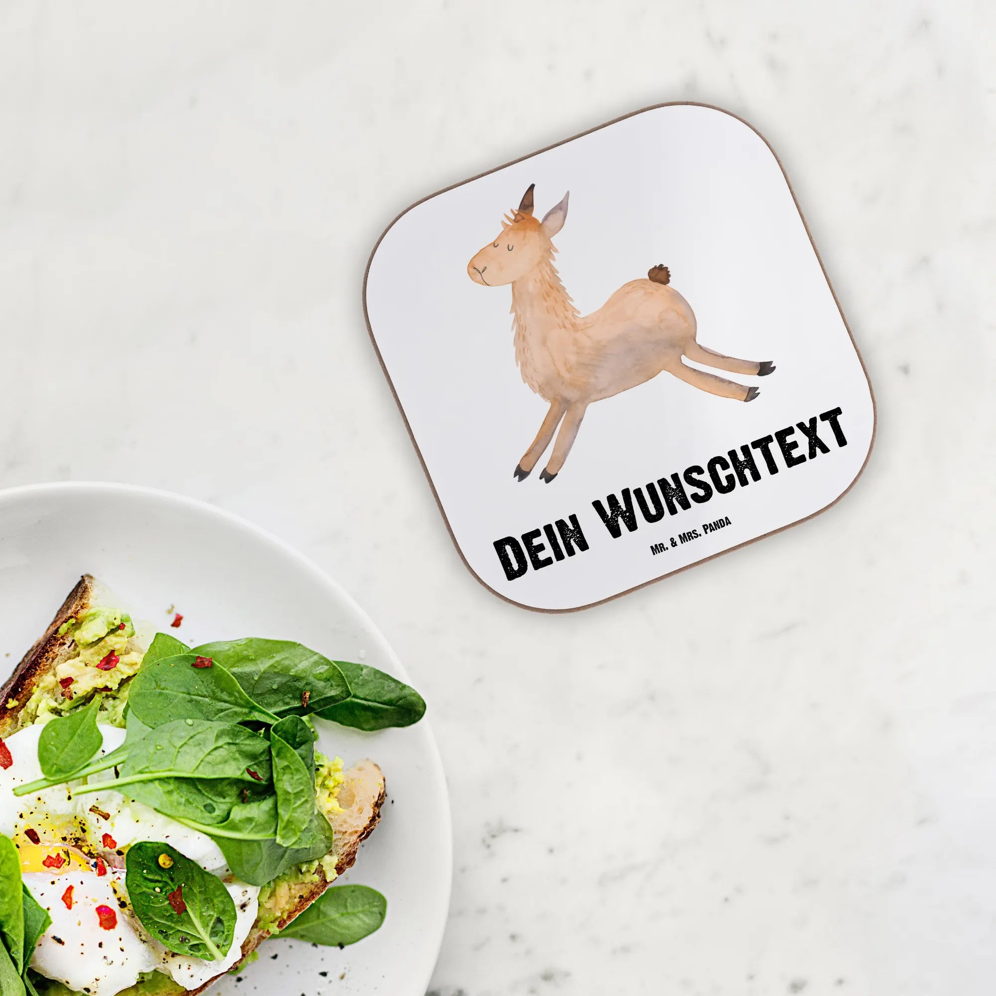 Suchst du das perfekte Geschenk für einen Lama-Fan oder einfach nur ein ganz spezielles Highlight für deinen eigenen Tisch? Dann haben wir genau das richtige für dich: unseren personalisierten Untersetzer "Lama springend" aus der bezaubernden Lama-Kollektion von Mr. & Mrs. Panda!