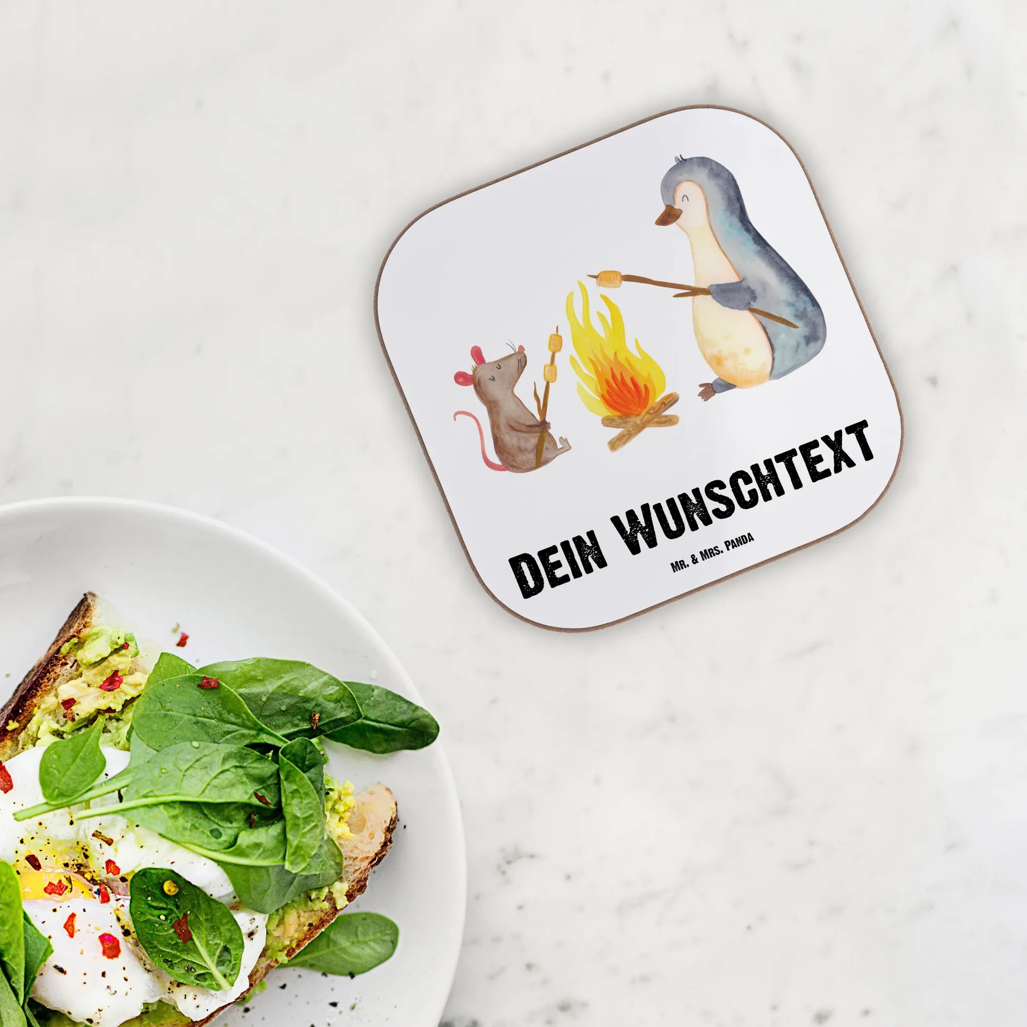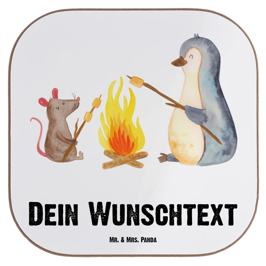 Die liebevoll gestalteten Details, wie der süße Pinguin, der mit seiner Maus am Lagerfeuer Marshmallows brät, bringen Gemütlichkeit und Freude in dein Zuhause. Mit einem personalisierbaren Namensaufdruck wird dieser Untersetzer zum perfekten Geschenk für Freunde, Familie oder Kollegen.