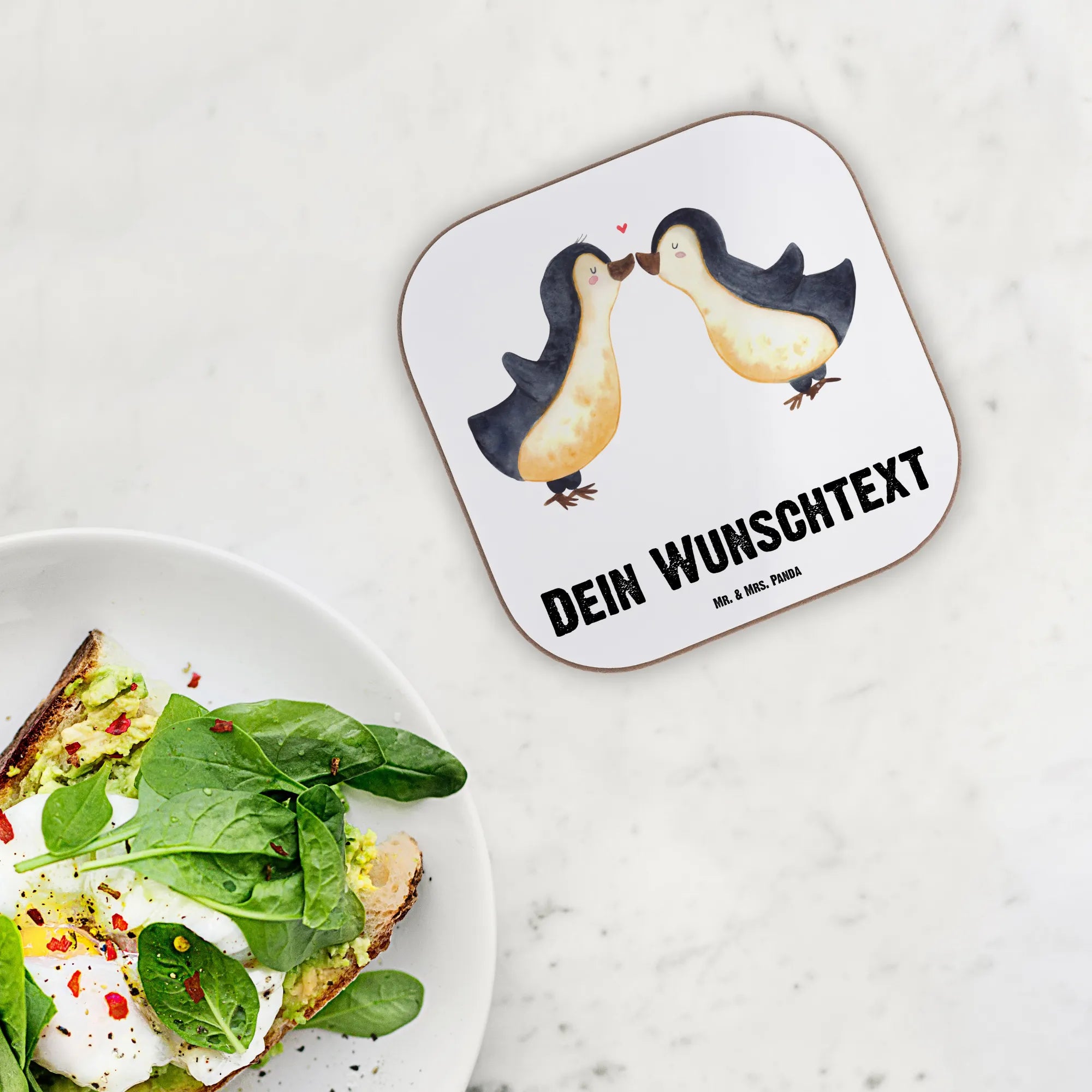 Entdecke den perfekten personalisierten Untersetzer mit dem süßen Motiv "Pinguine Kuss" aus der Kollektion Liebe von Mr. & Mrs. Panda! Dieser wunderschöne Untersetzer ist nicht nur ein echter Blickfang, sondern auch ein praktisches Accessoire für deinen Tisch. Mit den Maßen von 100 mm x 100 mm und einer Dicke von 5 mm ist er ideal geeignet, um deinen Tisch vor unschönen Abdrücken, Kratzern und extremen Temperaturen zu schützen.