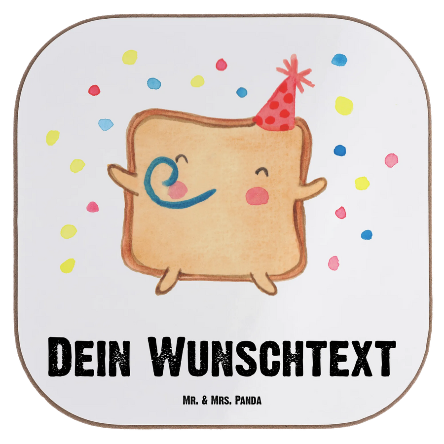 Mit seinem charmanten Design zeigt der Toast mit seinem lächelnden Gesicht und dem lustigen Partyhut, dass jeder Anlass ein Grund zum Feiern ist. Die Maße von 100 mm x 100 mm und die robuste Dicke von 5 mm machen den Untersetzer zu einem stabilen und funktionalen Accessoire für jeden Ess- oder Couchtisch. Er schützt deinen Tisch vor unschönen Abdrücken, Kratzern und extremen Temperaturen und hat zudem eine glänzende, hochwertige Oberfläche, die jedes Getränk gebührend in Szene setzt!