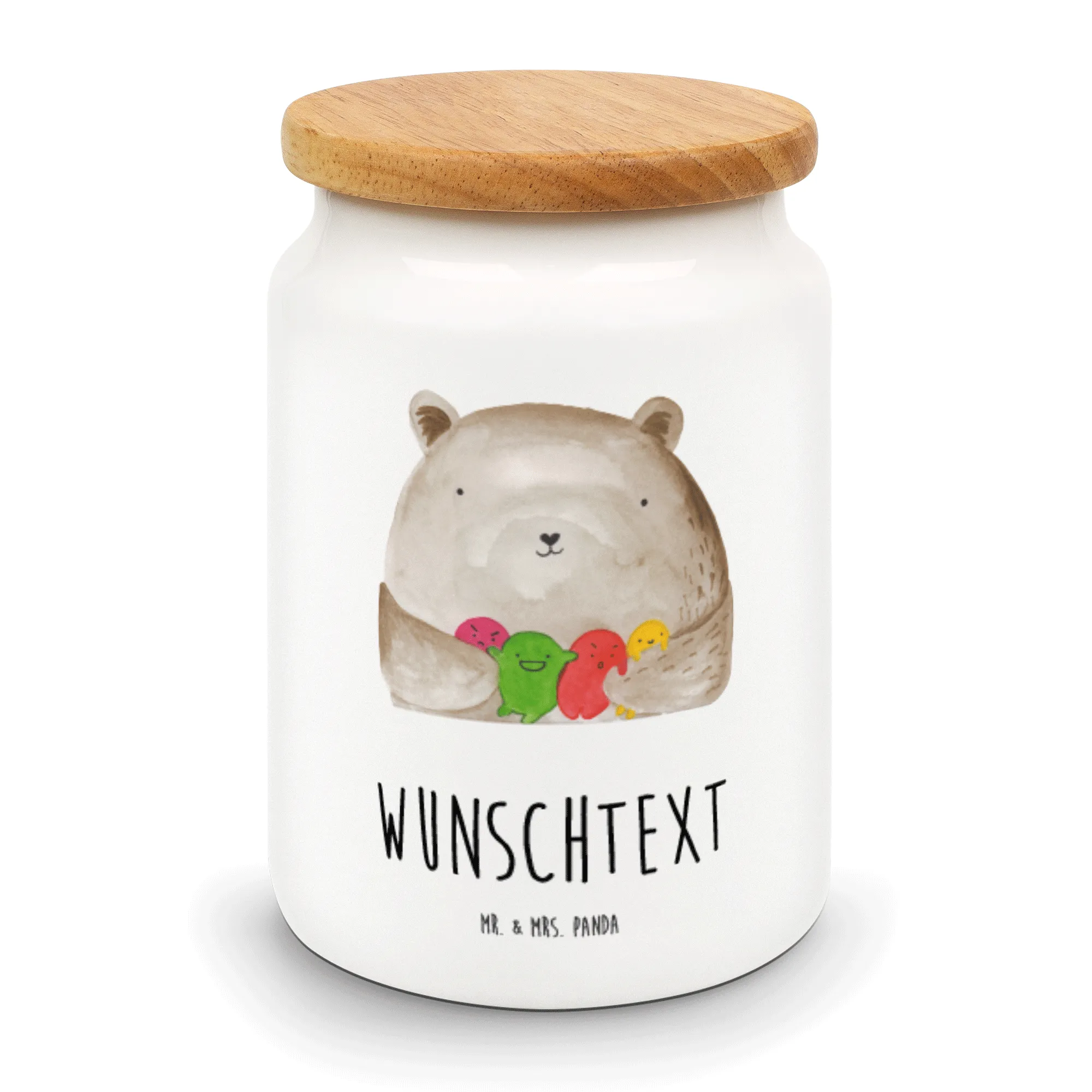 Die liebevolle, personalisierte Vorratsdose Bär Gefühl von Mr. & Mrs. Panda ist das perfekte Geschenk für all jene, die das Besondere lieben! Mit einem bezaubernden Motiv, das einen süßen Bären zeigt, der viele bunte Kugeln in den Händen hält, drückt diese Dose tiefste Gefühle aus - von Liebe und Freundschaft bis hin zu Sehnsucht und Trauer.
