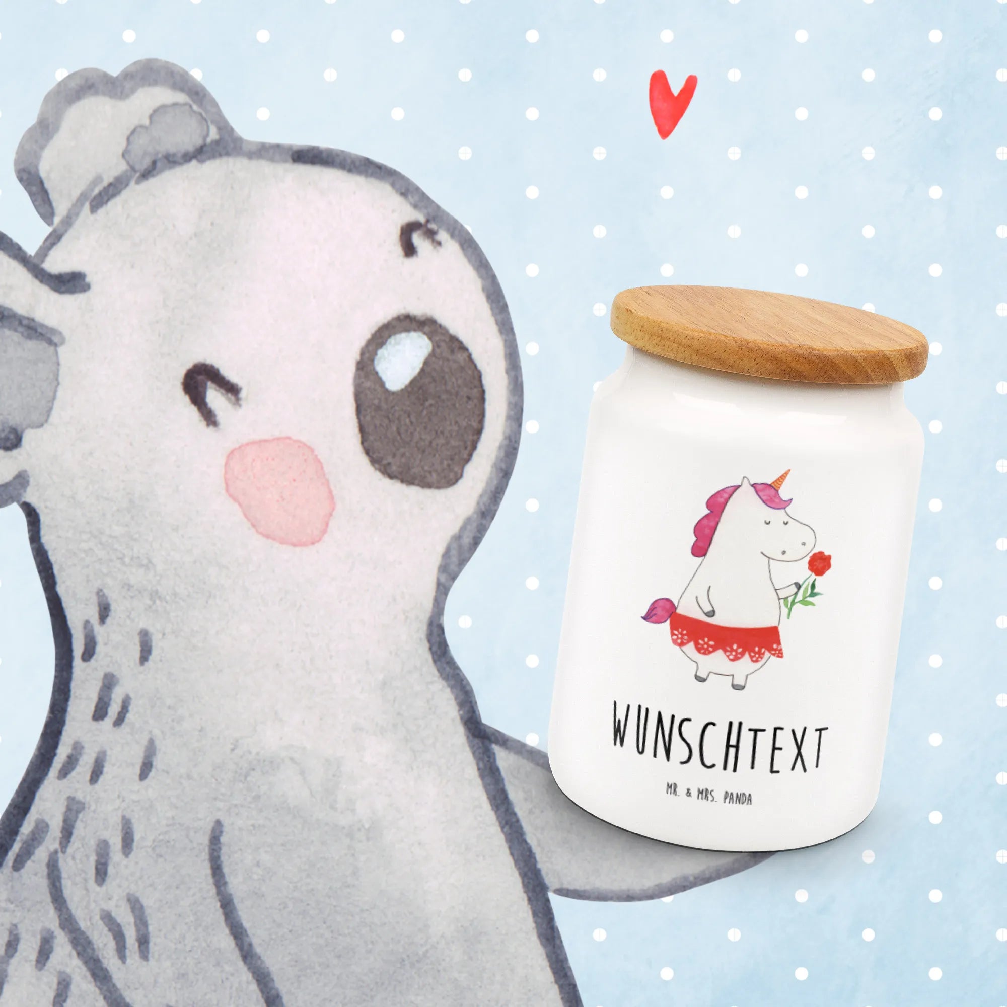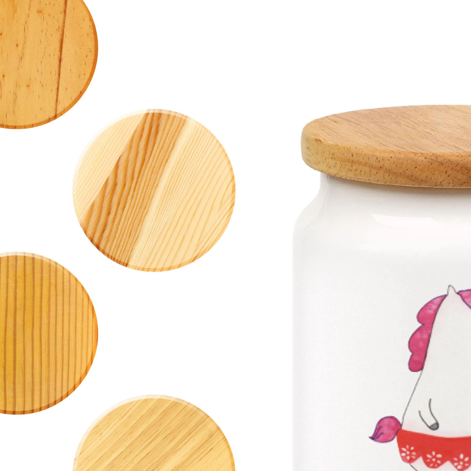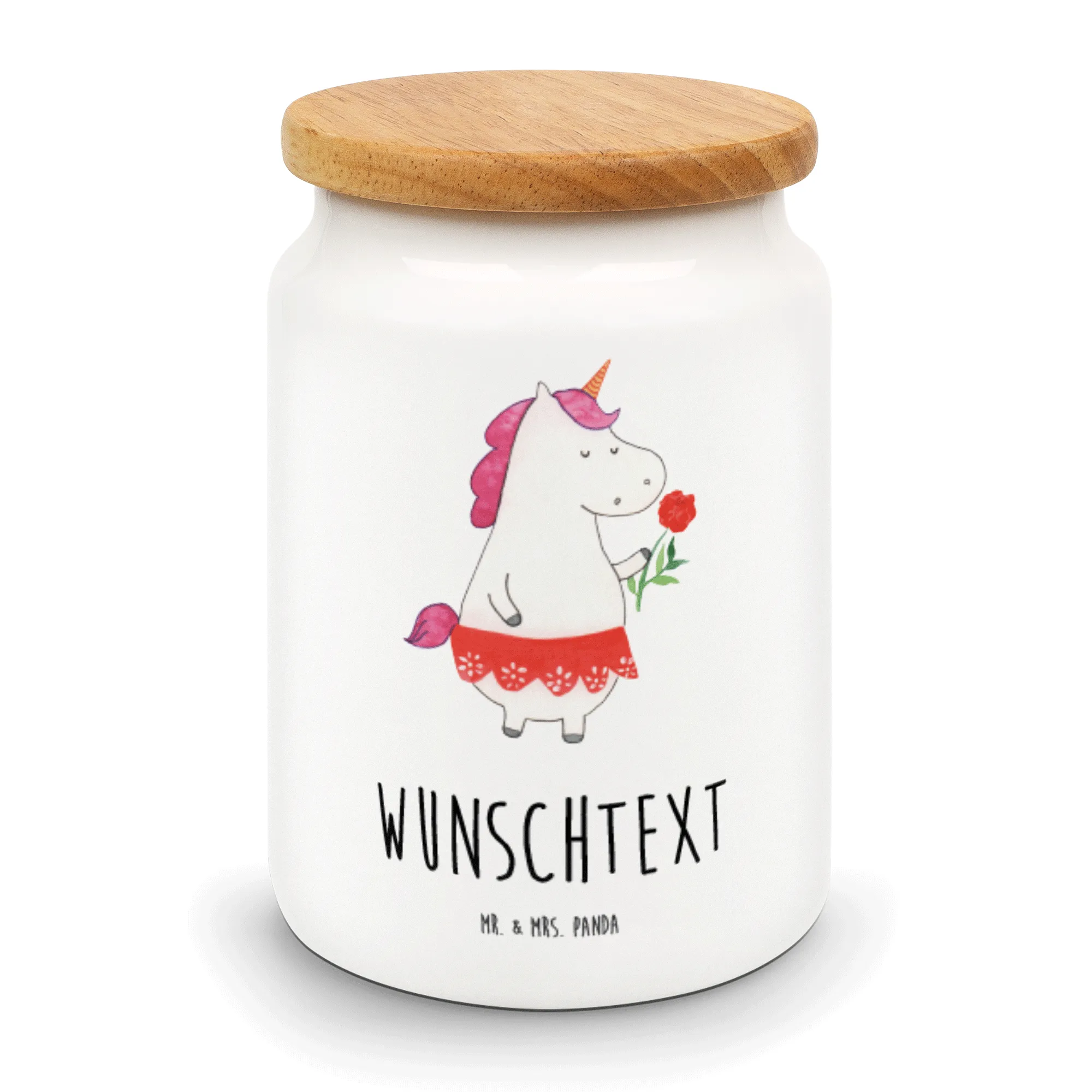 Die personalisierte Vorratsdose "Einhorn Dame" aus der zauberhaften Einhorn-Kollektion von Mr. & Mrs. Panda ist der perfekte Geschenkartikel für alle Einhornliebhaber und feinen Damen! Diese liebevoll gestaltete Keramikdose ist nicht nur ein echter Hingucker, sondern auch unglaublich praktisch. Mit einem Durchmesser von 95 mm und einer Höhe von 145 mm bietet sie genug Platz, um all Deine Lieblingskekse, Süßigkeiten oder andere kleine Schätze sicher und stilvoll aufzubewahren. Der massive Holzdeckel mit Kunststoffdichtung sorgt dafür, dass alles frisch bleibt und jeder Griff ins Innere ein kleines Vergnügen ist.
