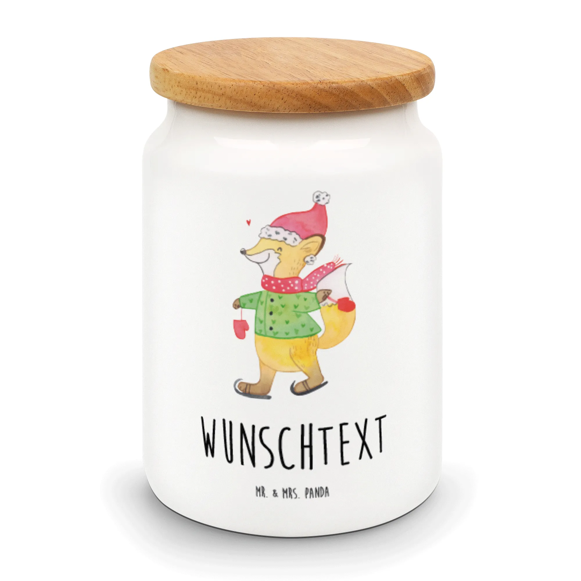 Die personalisierte Vorratsdose Fuchs Schlittschuhe von Mr. & Mrs. Panda ist das perfekte Geschenk für die kalte Jahreszeit! Juhuu, Weihnachten steht vor der Tür und du möchtest deinen Liebsten etwas ganz Besonderes schenken. Diese liebevoll gestaltete Keramikdose, die die fröhlichen Schlittschuh fahrenden Füchse zeigt, macht jeden Keks und jede Leckerei zu einem ganz besonderen Genuss.