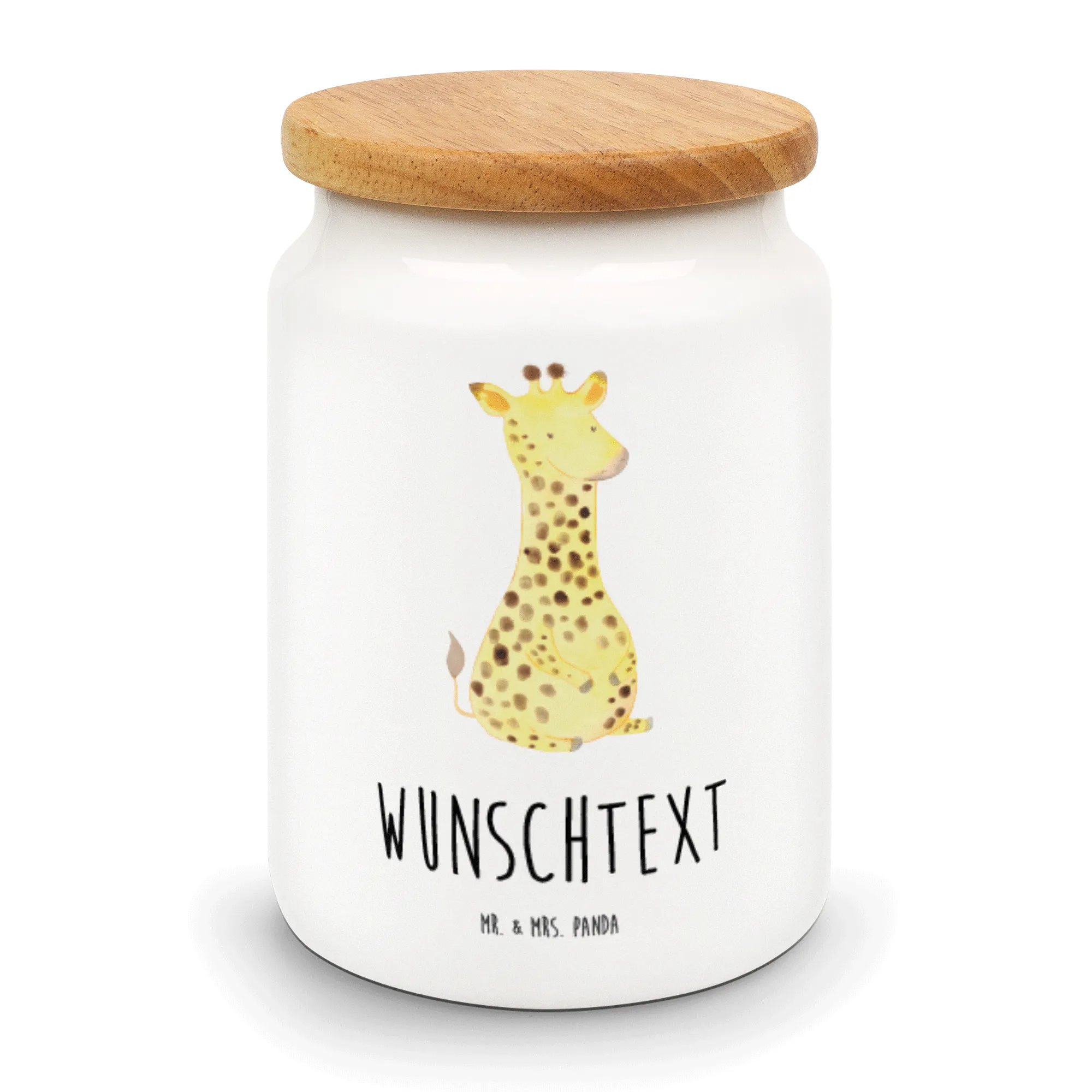 Suchst du nach dem perfekten Geschenk für einen Afrika-Liebhaber oder einen Freund, der die Genehmigung von Glück und Abenteuer sucht? Die personalisierte Vorratsdose mit dem niedlichen Motiv "Giraffe Zufrieden" aus der speziellen Afrika-Kollektion von Mr. & Mrs. Panda ist genau das Richtige!