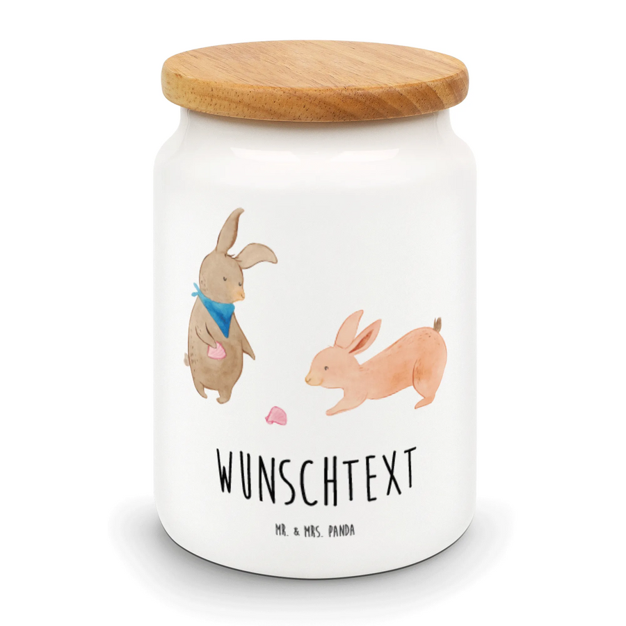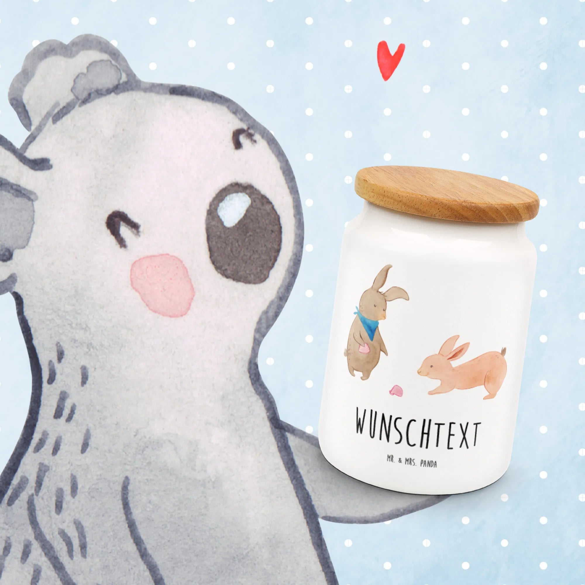 Die liebevolle, personalisierte Vorratsdose mit dem bezaubernden Motiv "Hasen Muschel" von Mr. & Mrs. Panda ist das perfekte Geschenk für alle, die das Besondere lieben. Sie passt wunderbar in jede Familie, denn sie ist nicht nur schön, sondern auch extrem funktional. Mit einem Durchmesser von 95 mm und einer Höhe von 145 mm bietet sie ausreichend Platz für all deine Snacks, Keksrezepte oder die kleinen Schätze, die du im Alltag sammelst.
