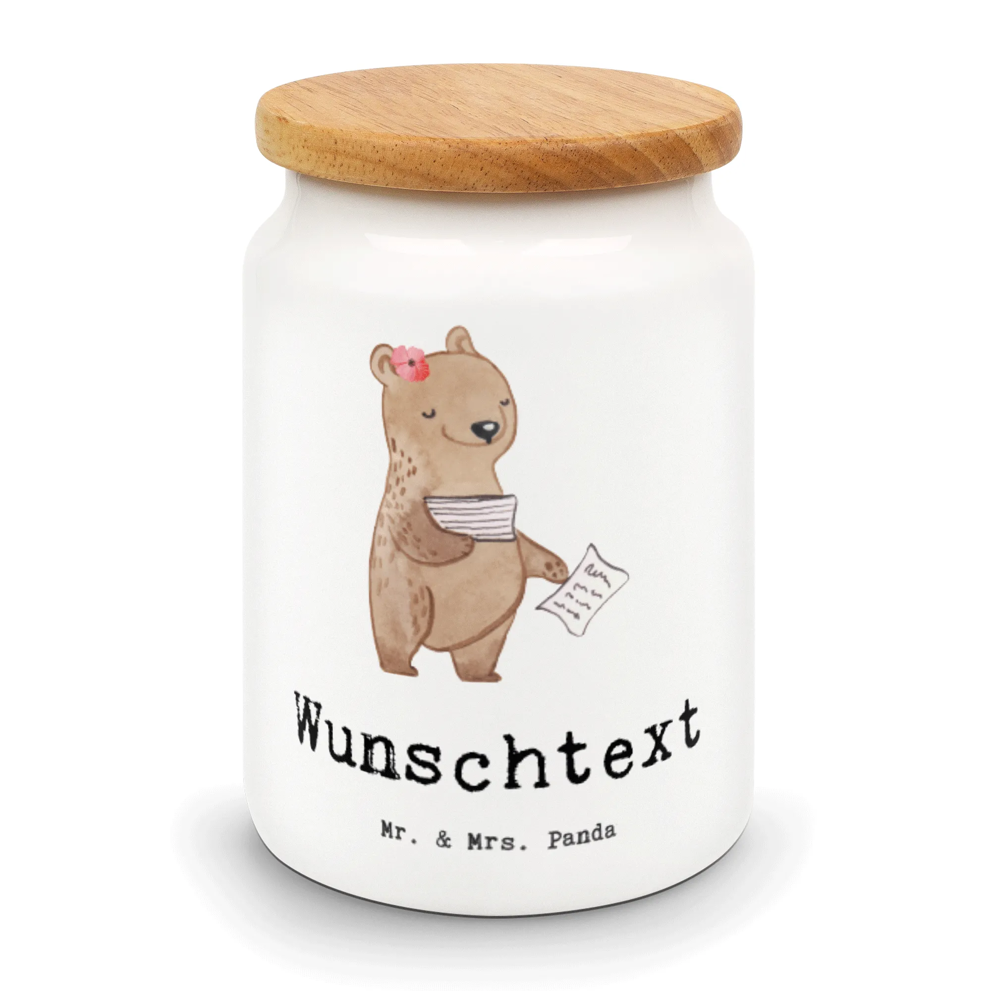 Die personalisierte Vorratsdose "Insolvenzverwalterin mit Herz" aus der kreativen Berufe-Kollektion von Mr. & Mrs. Panda ist das perfekte Geschenk für all diejenigen, die in der Welt der Finanz- und Unternehmenssanierungen tätig sind. Diese liebevoll gestaltete Keramikdose ist nicht nur ästhetisch ansprechend, sondern auch unglaublich funktional. Mit einem beeindruckenden Volumen von 650 ml bietet sie ausreichend Platz für Plätzchen, Büromaterialien oder auch kleine persönliche Schätze.