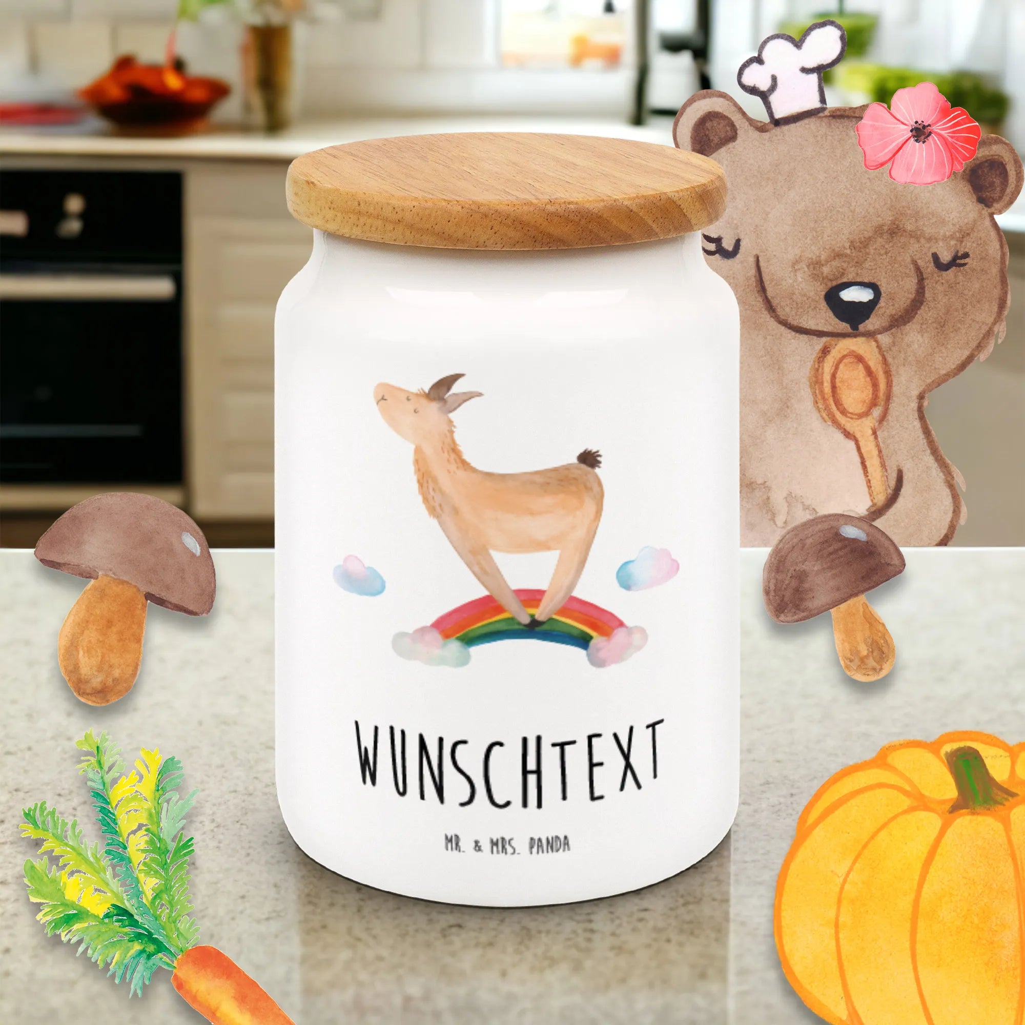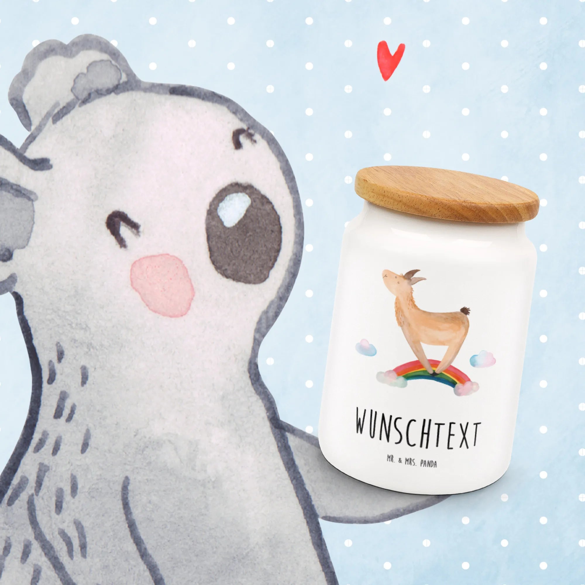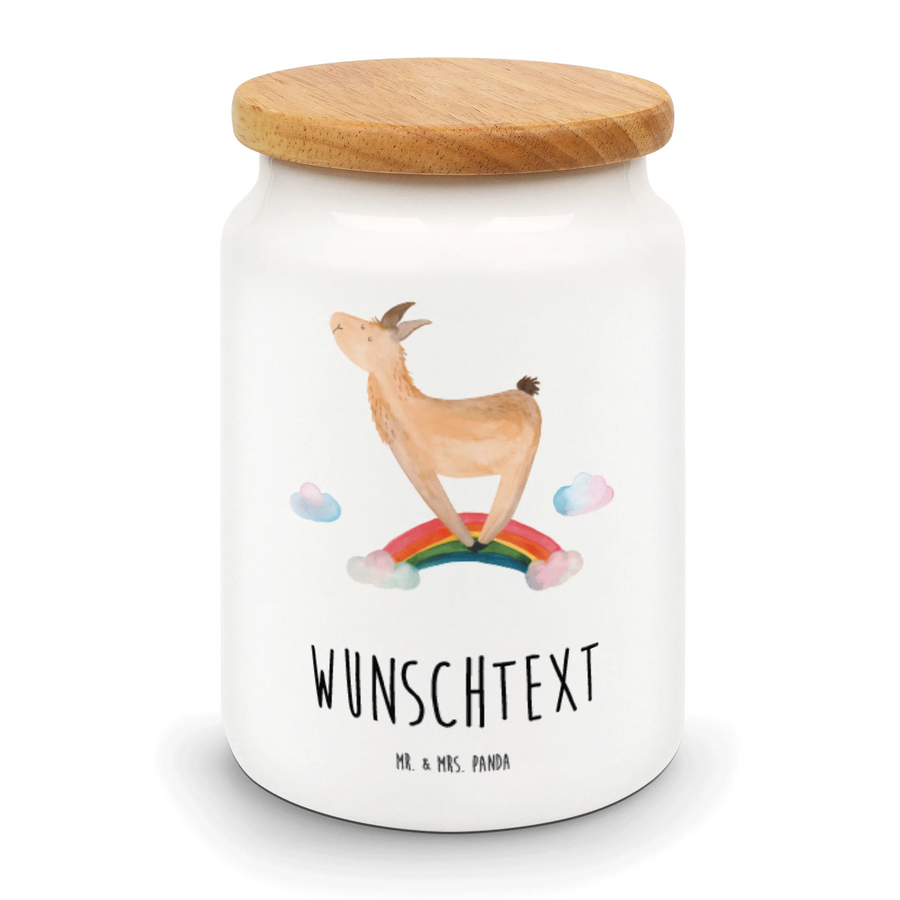 Personalisierte Vorratsdose »Lama Regenbogen« – das perfekte Geschenk für Lama-Fans und alle, die ein kleines, freches Statement lieben. Unser süßes Lama hüpft über einen bunten Regenbogen, daneben prangt der Spruch „Haters gonna hate“ – und du kannst die Vorratsdose mit deinem Wunschtext oder Wunschnamen personalisieren. So wird aus einer hübschen Küchenbox ein ganz persönliches Unikat. 🦙🌈