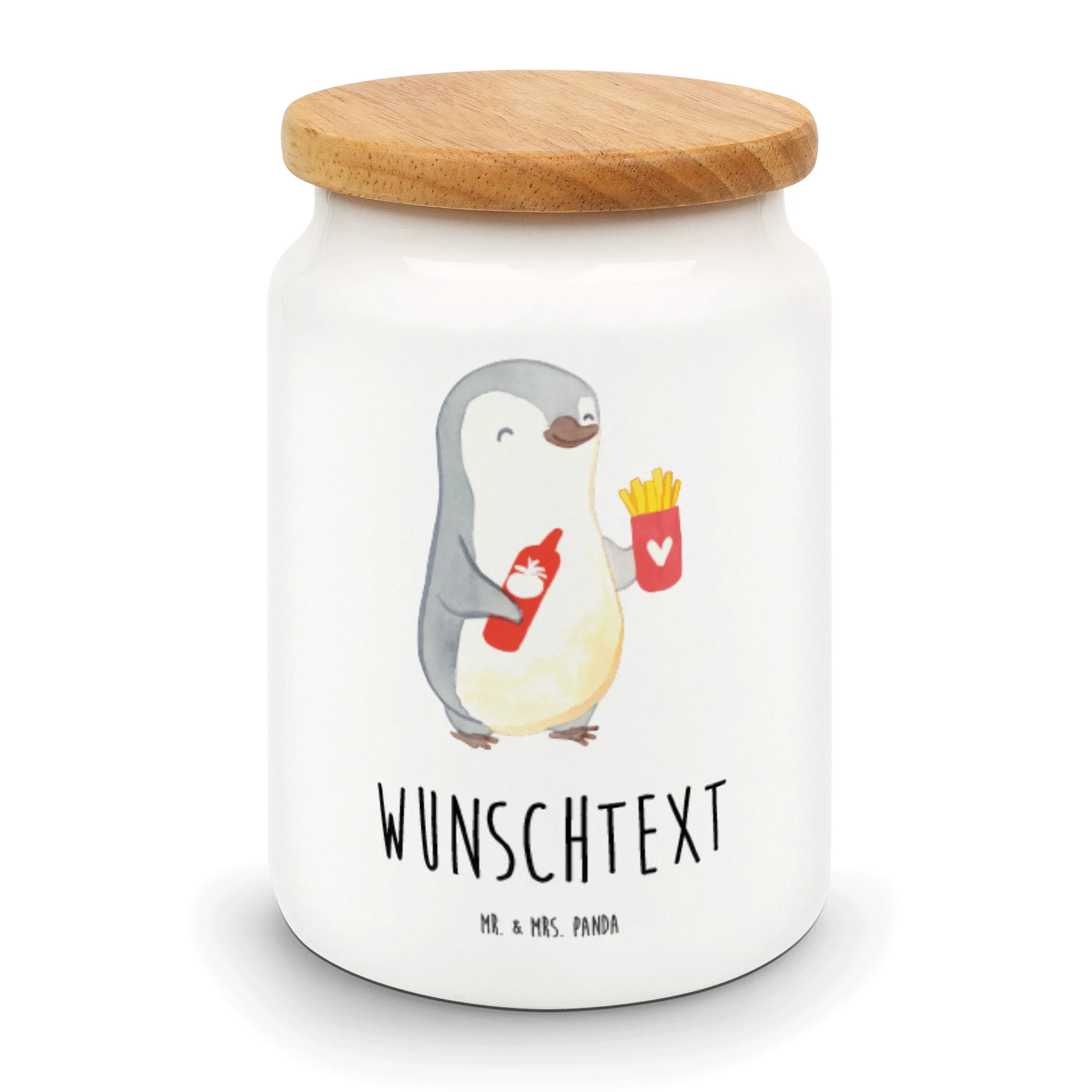 Die personalisierte Vorratsdose mit dem süßen Pinguin-Motiv 'Pommes' von Mr. & Mrs. Panda ist das perfekte Geschenk für jeden besonderen Anlass! Mit dem liebevollen Spruch 'Mit dir würde ich sogar meine Pommes teilen' bringt diese Dose nicht nur Freude, sondern auch eine besondere Botschaft mit sich. Egal, ob für den Valentinstag, den Hochzeitstag oder einfach als liebevolles Mitbringsel für eine sehr gute Freundin oder den Partner – dieses Geschenk lässt Herzen höher schlagen.