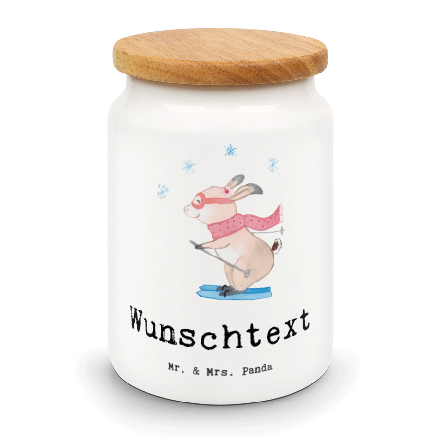 Das hochwertige Material und der massive Holzdeckel mit Kunststoffdichtung sorgen dafür, dass die Kekse länger frisch bleiben. Wenn du also auf der Suche nach einem einzigartigen Geschenk zum Jubiläum, Abschied oder einfach nur als Überraschung für eine verdiente Skilehrerin bist, dann ist diese personalisierte Keramikdose genau das Richtige.